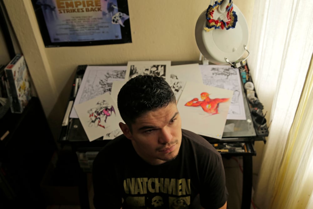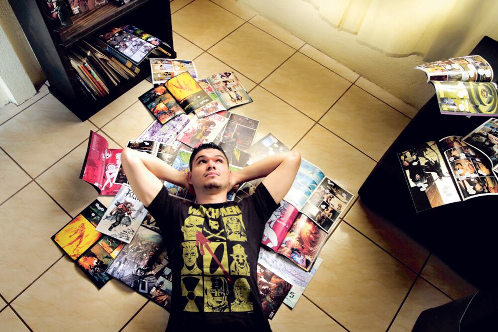 Atrás quedaron las épocas en que podía trabajar una ilustración durante horas y horas hasta alcanzar la perfección; ahora, tarda media hora por viñeta sin sacrificar la calidad de su trabajo. “El manejo del tiempo es muy importante porque el producto lo necesitan en determinados tiempos. Me encargo de resolver la visión del guionista junto con la mía”, explica este seguidor del trabajo de dibujantes como Bob Kane, Bruce Timm, Darwyn Cooke y Juanjo Garrido; los considera sus héroes.