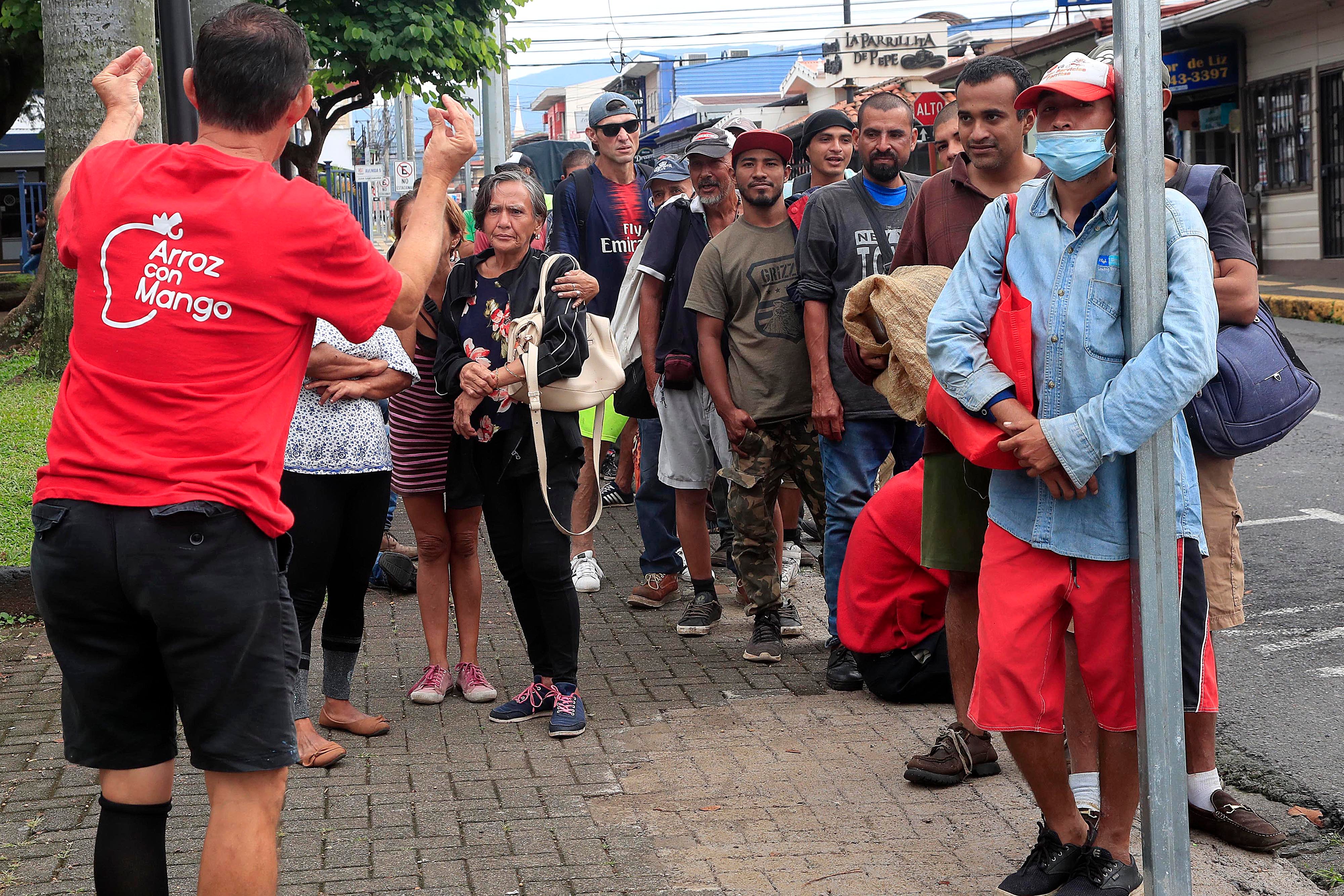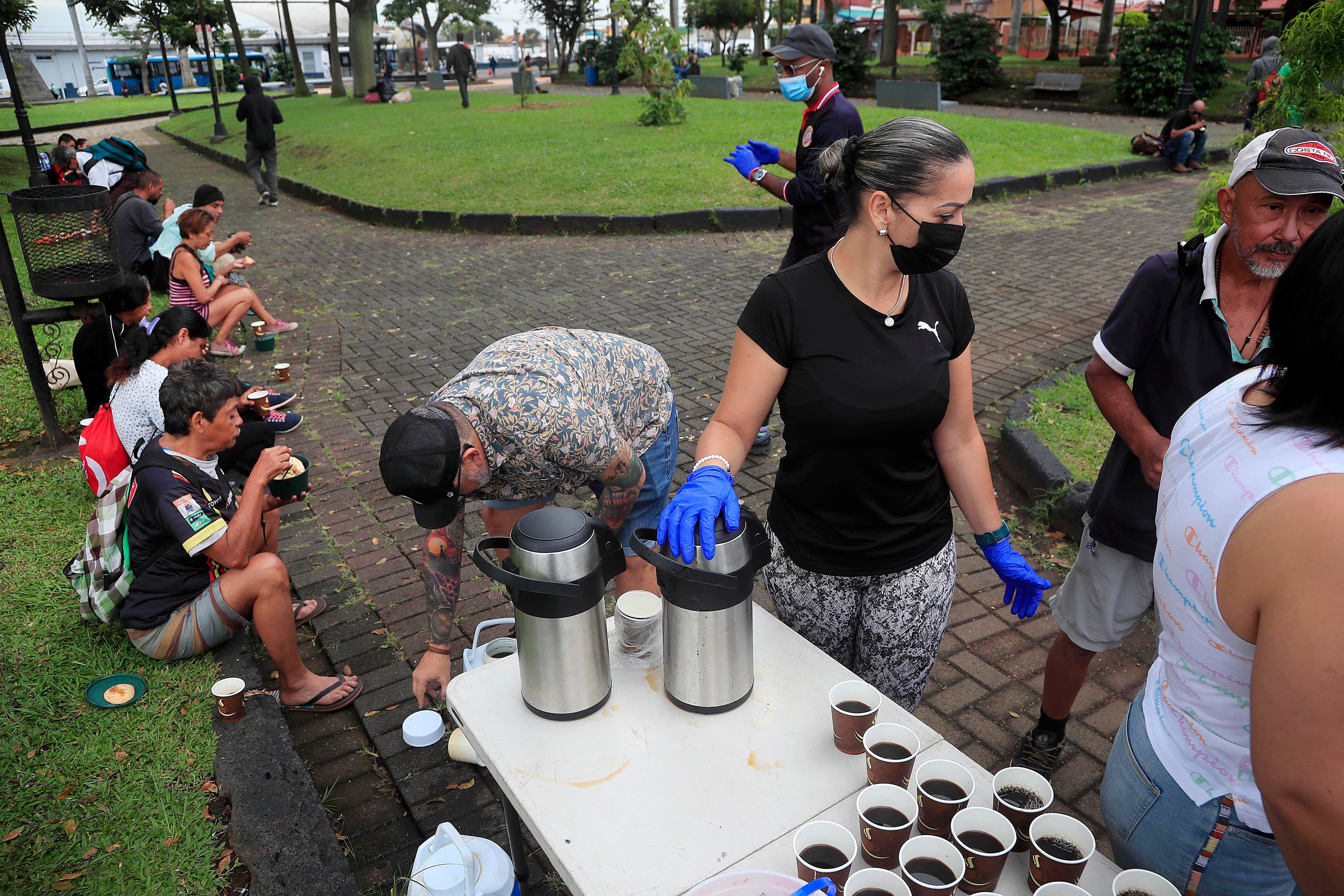 La mañana no ha terminado. A un costado del Parque General Tomás Guardia hay otra fila india. Es una con menos personas, pero todas esperan con las mismas ansias el desayuno.