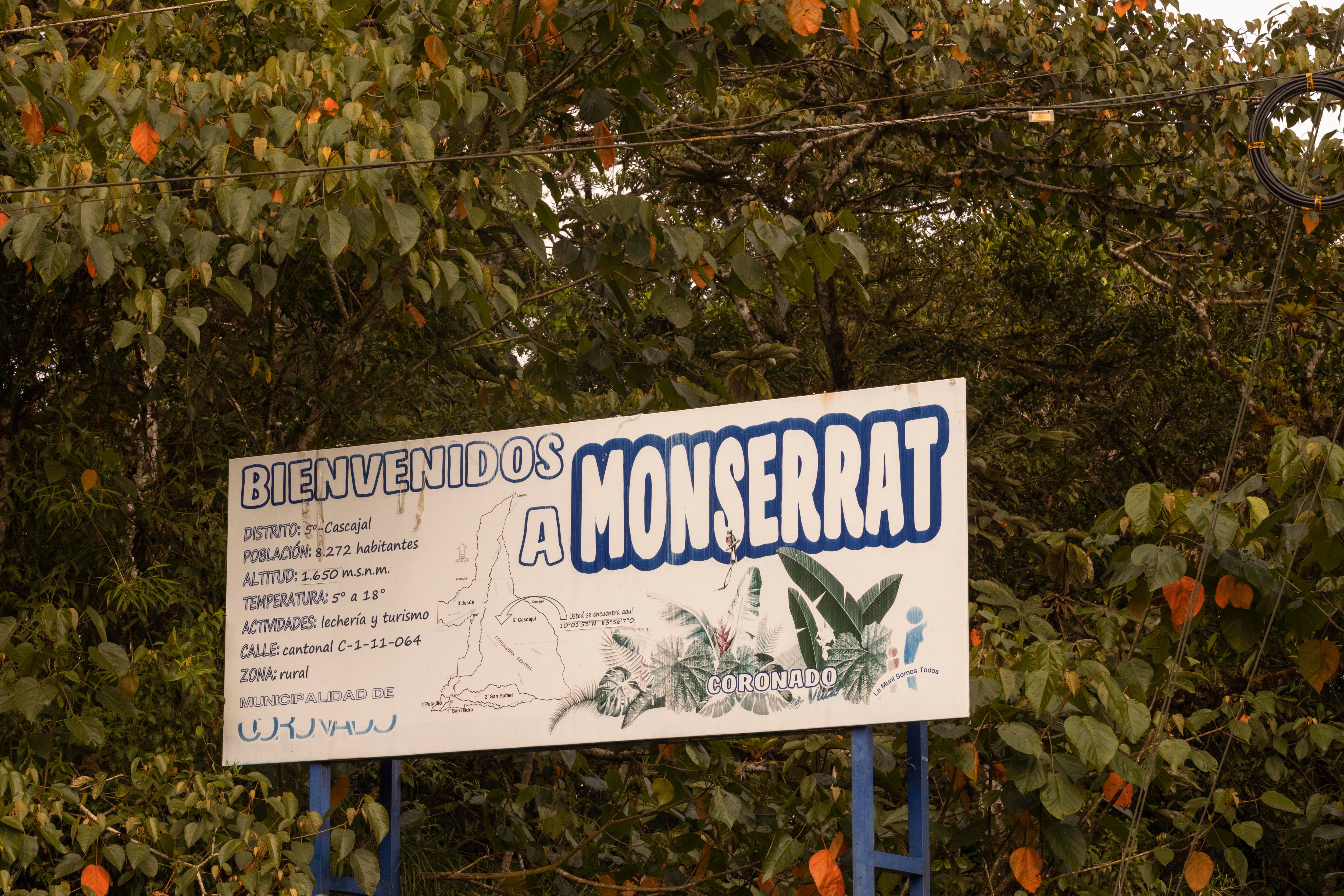 Monserrat pertenece también a Cascajal, en el cantón de Vázquez de Coronado. Está a 17 kilómetros de San José, poco menos de una hora desde la capital del país.