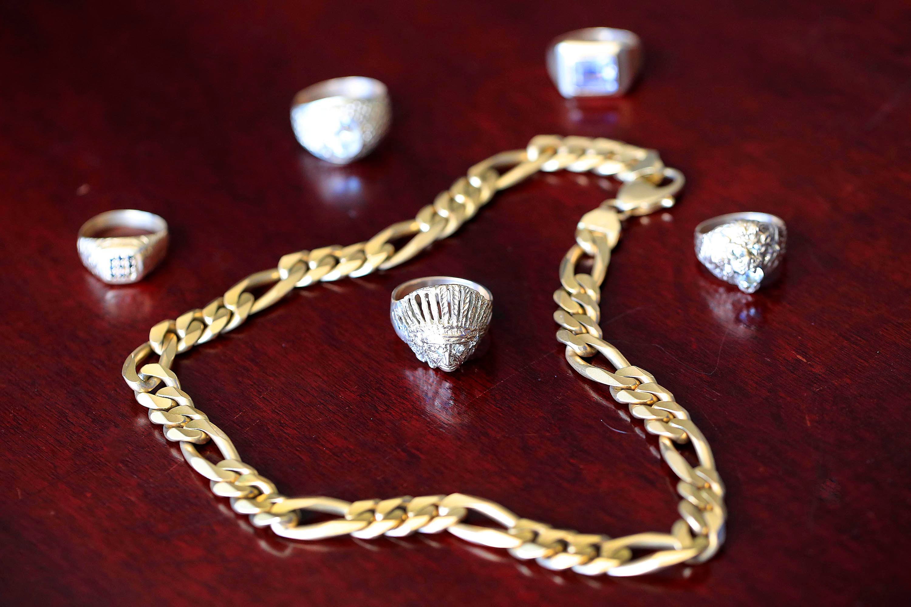 Entre estas joyas figuran desde un reloj de la marca Rolex que en el mercado legal podría costar $19.000, un rosario hecho de tres oros (blanco, amarillo y rosado) que se valoró para la subasta en $2.000, una esclava para hombre con una piedra ónix elaborada en oro de 14 quilates y con cinco diamantes incrustados que valdrá $1.397; hasta relojes de bolsillo que no superan el medio dólar de precio o gargantillas de plástico que fueron valoradas también en menos de un dólar.