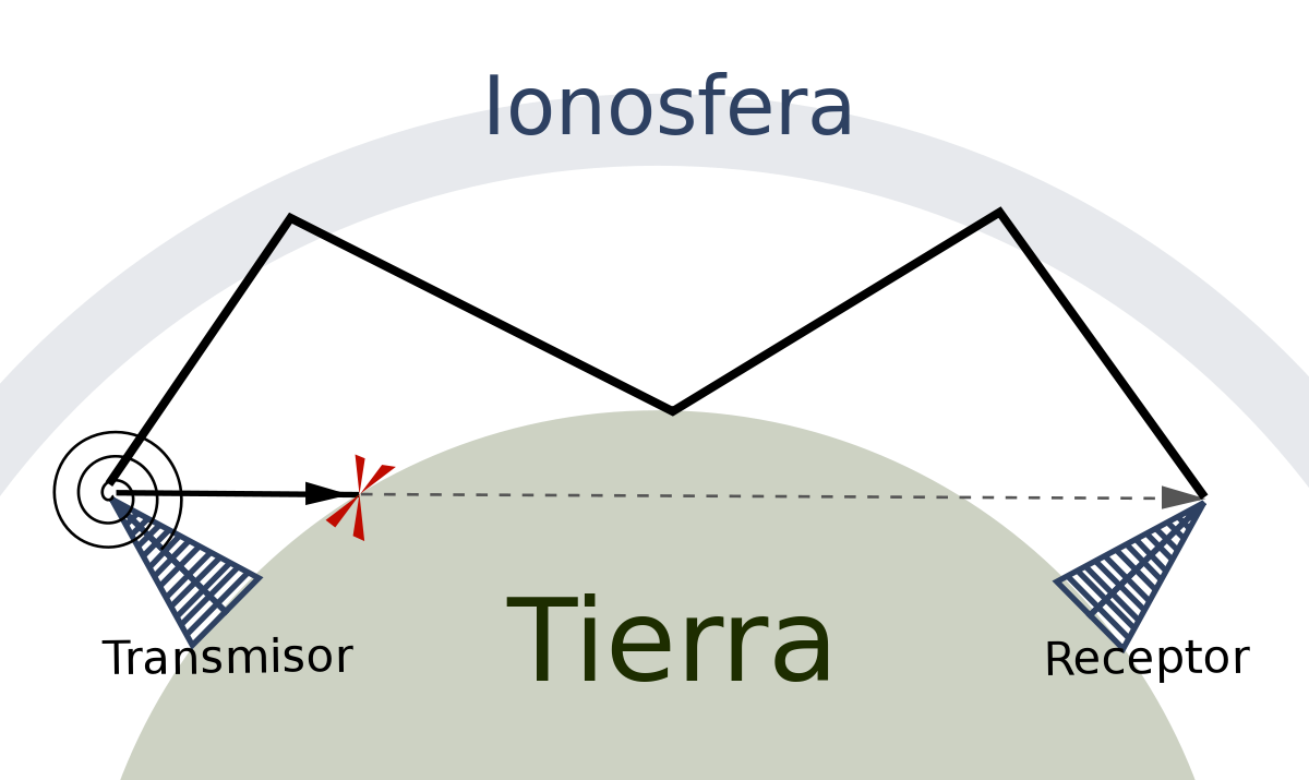 “Los comunicados internacionales o transmisiones vía radio se pueden hacer de varias formas, pero la más común es por medio de la ionosfera. La señal que uno emite viaje en línea recta hacia la ionosfera, que funciona como un espejo, la señal rebota ahí y puede pegar en la Tierra nuevamente o en el mar. Vuelve a pegar otra vez en la ionosfera y comienza a dar saltos, y así es como logramos darle la vuelta al mundo”, explicó Roberto.
