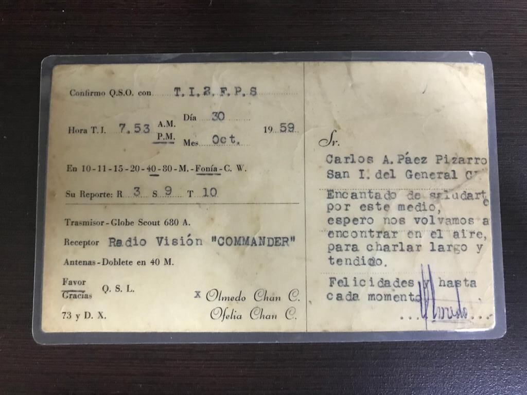 Pero el QSL no es el único recuerdo que don Carlos guarda de esa experiencia. De hecho, el QSL es poca cosa, comparado con el amigo que cosechó en aquella transmisión: el señor Olmedo Chan.