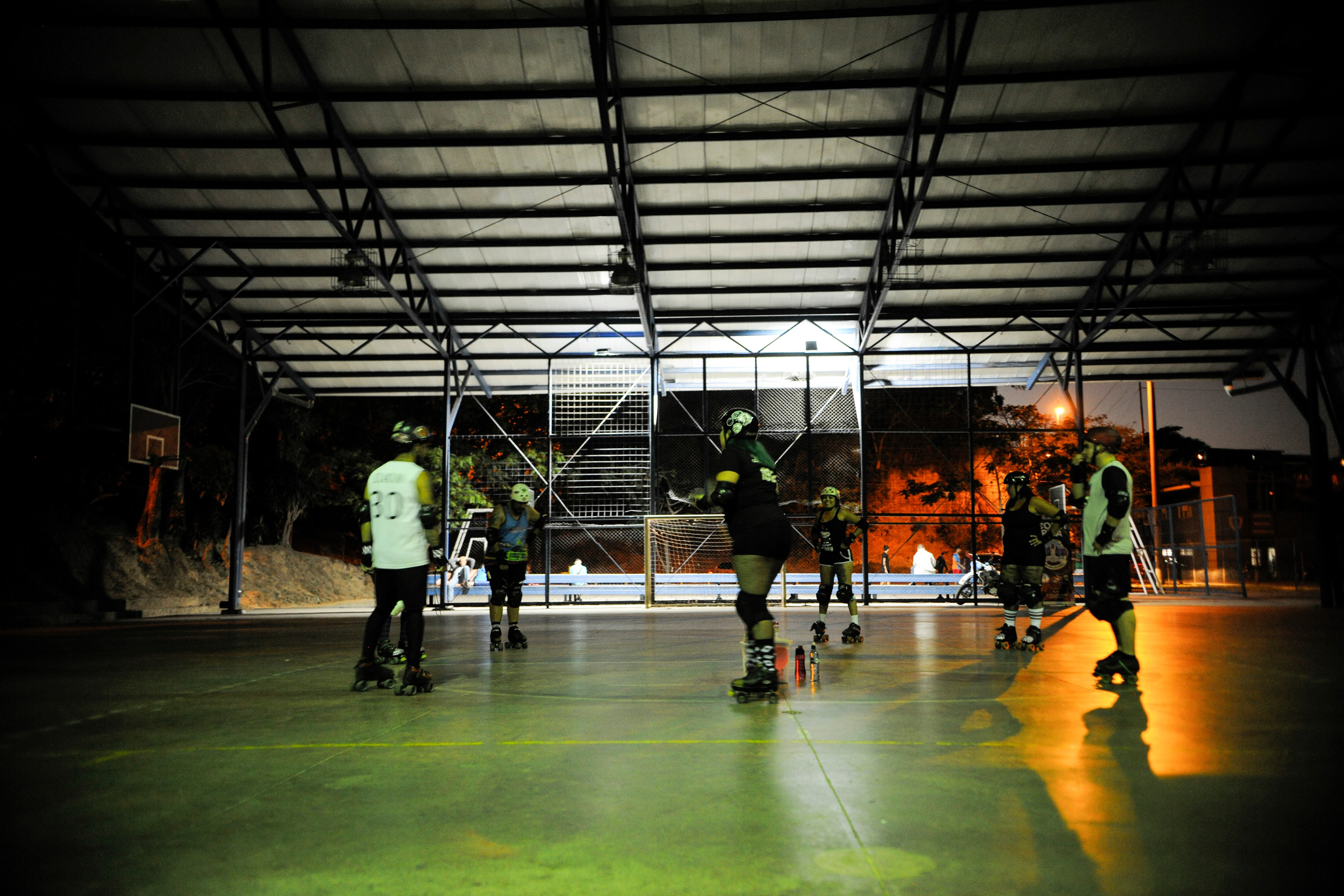 Minutos antes de iniciar con el entrenamiento, Nicole Sandoval se terminaba de ajustar sus patines. Sentada en una de las bancas del polideportivo, explica que solo tiene alrededor de siete meses de practicar esta disciplina, a la que llegó porque quería participar en un deporte que le permitiera estar en igualdad de condiciones con los hombres. Para ella, esto se trata más de una cuestión de trabajo en equipo, estrategia y destrezas, que de fuerza física.
