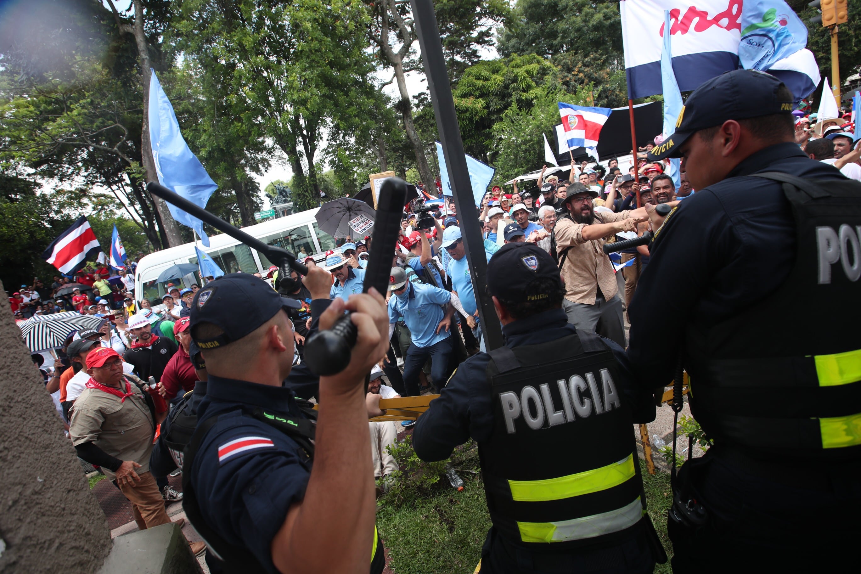 Los policías intervinieron en un forcejeo que debilitó las vallas que rodeaban la Asamblea Legislativa, protegieron al Presidente Carlos Alvarado tras un altercado en la Plaza de la Cultura, recibieron lanzamiento de huevos, usaron gases lacrimógenos en Puntarenas, desbloquearon caminos en Barranca y San Carlos, detectaron bombas molotov en Limón, destaparon una polémica al ingresar al campus de la Universidad de Costa Rica y, sobre todo, no han cerrado párpados desde que la declaratoria de huelga hizo ecos en todo el país.