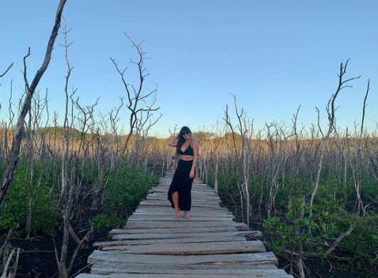 Una foto con el cielo azul de fondo y una vegetación que rodea un manglar es para el recuerdo. Esta imagen se puede lograr posando en el famoso puente de madera de playa Avellanas, que es parte de la propiedad del hotel Las Olas, en Tamarindo, Guanacaste.