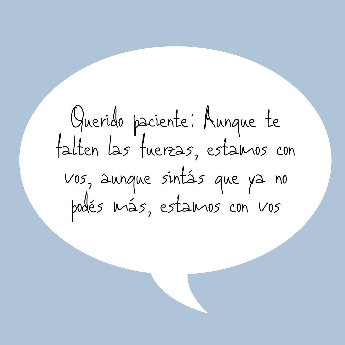"Te acompaño un ratito en esta mañana. Me gustaría estar a tu lado, escuchándote o si no pudieras hablar, haciendo contacto visual. Como no podemos, voy a imaginarme que estoy frente a vos, sentada en una silla mientras charlamos.