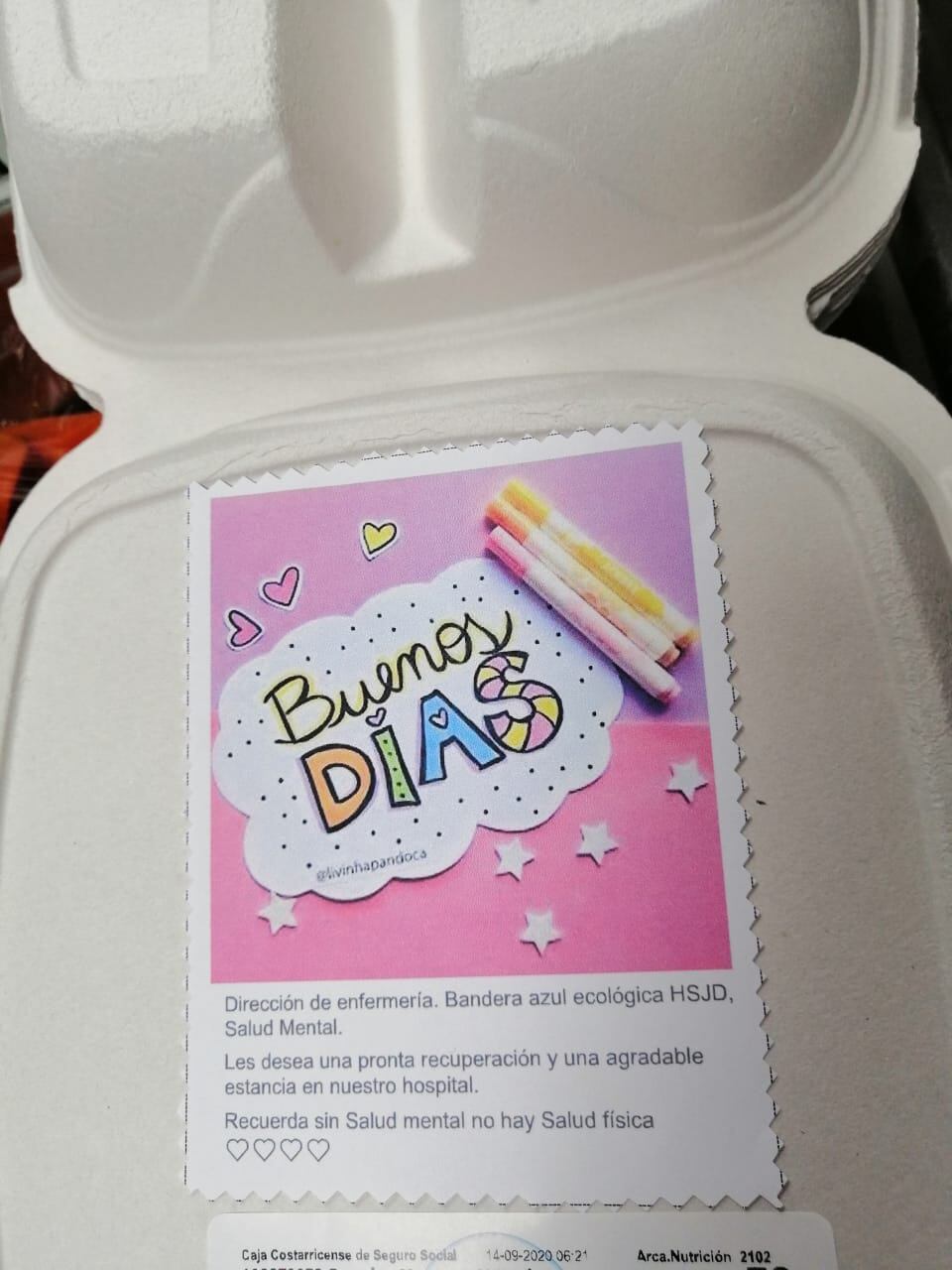 Todos los días en los empaques de las comidas les adjuntan mensajes esperanzadores y de buenas vibras para que, aprovechando el espacio de alimentación que es tan importante, también reciban los buenos deseos de las personas que se encargan de su salud.