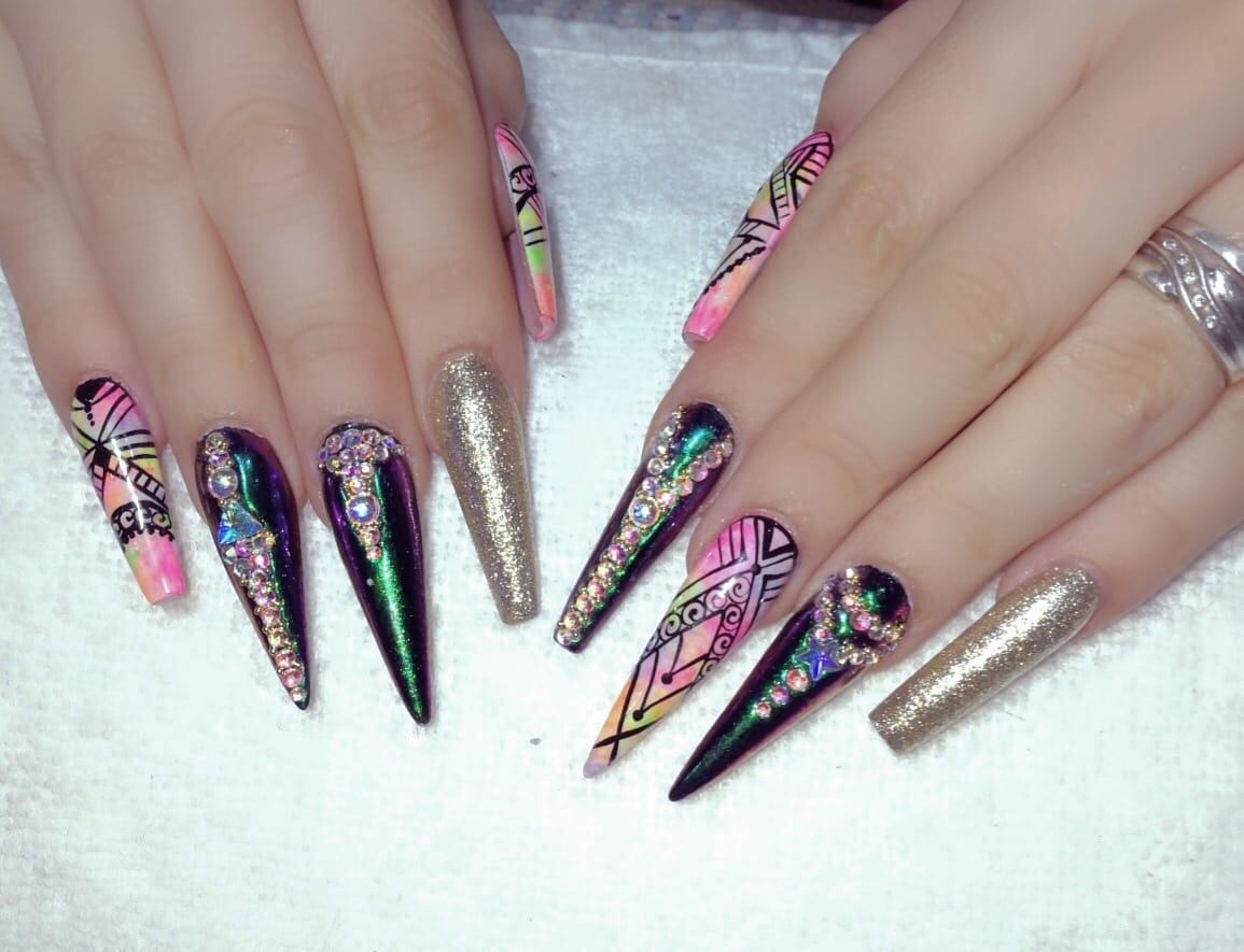 Que si largas, pequeñas, cargadas de adornos, sencillas, con brillos, de un solo color o multicolores. Lo que la clienta desee se le cumple.