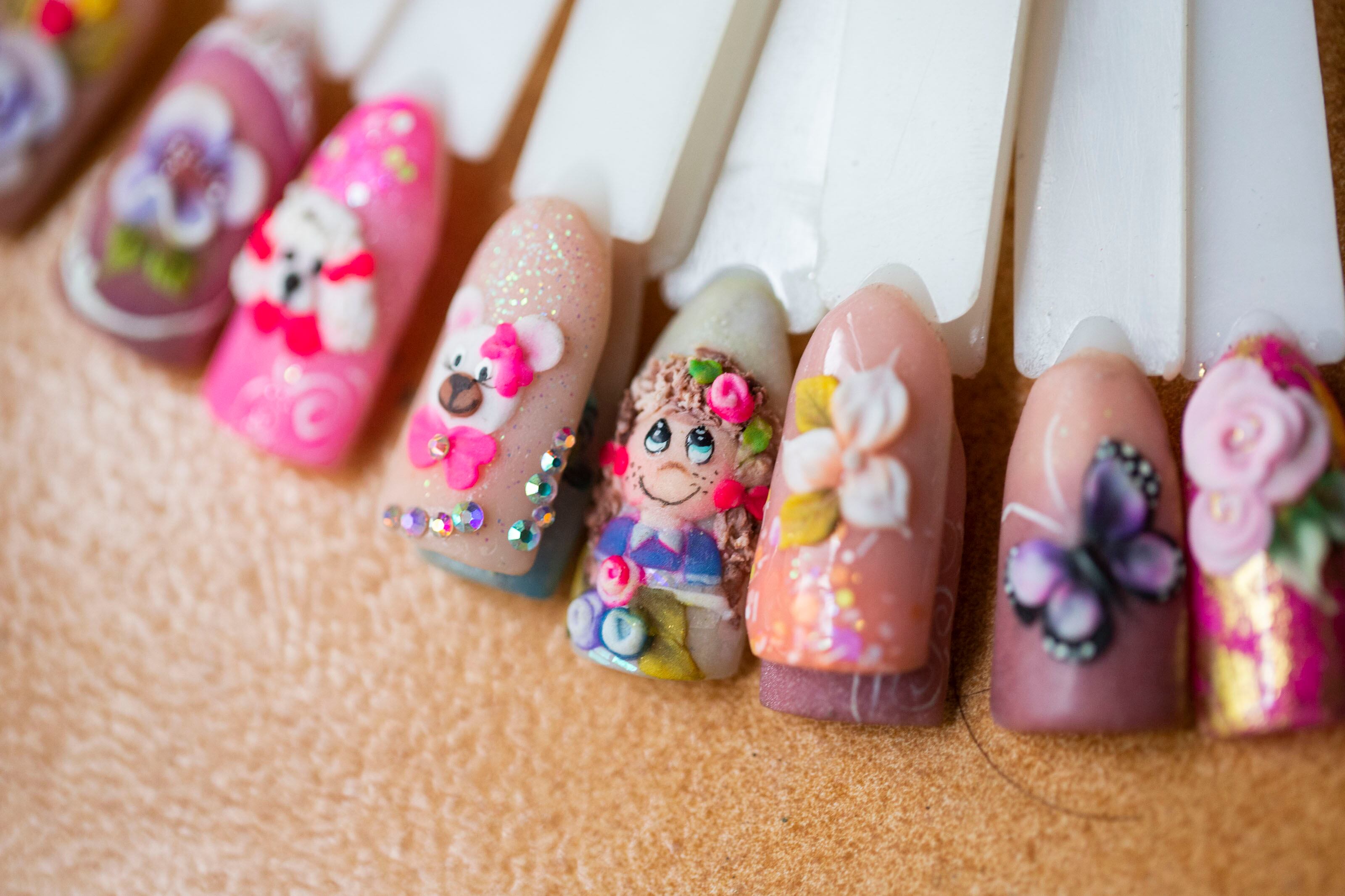 Los métodos pasaron rápidamente de aquellas florecitas blancas hechas con palillos de dientes sobre el famoso color rojo pasión a diseños creados en tercera dimensión complementados con adornos de diminutos cristales o muñecas dibujadas finamente a mano. Las uñas son un lienzo para el arte en miniatura.