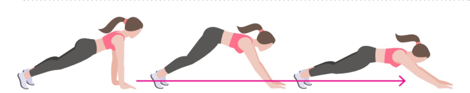 | Rodillas alternadas | Desplantes laterales | Laterales individuales hombros |