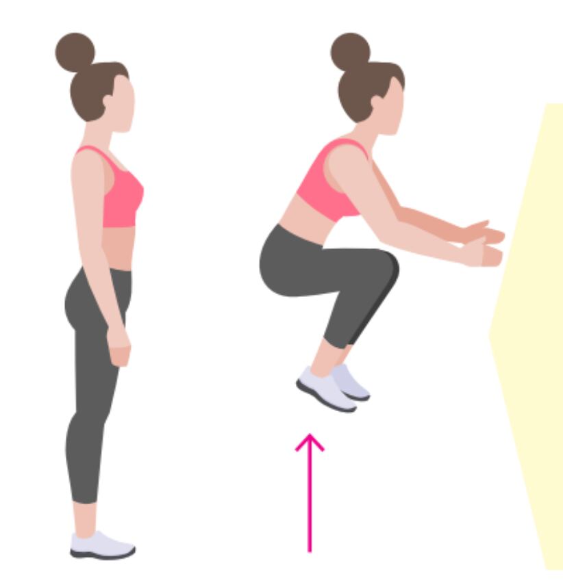 7. Saltos con rodillas al pecho: En posición vertical, salte y lleve las rodillas al pecho. Controle el impacto.