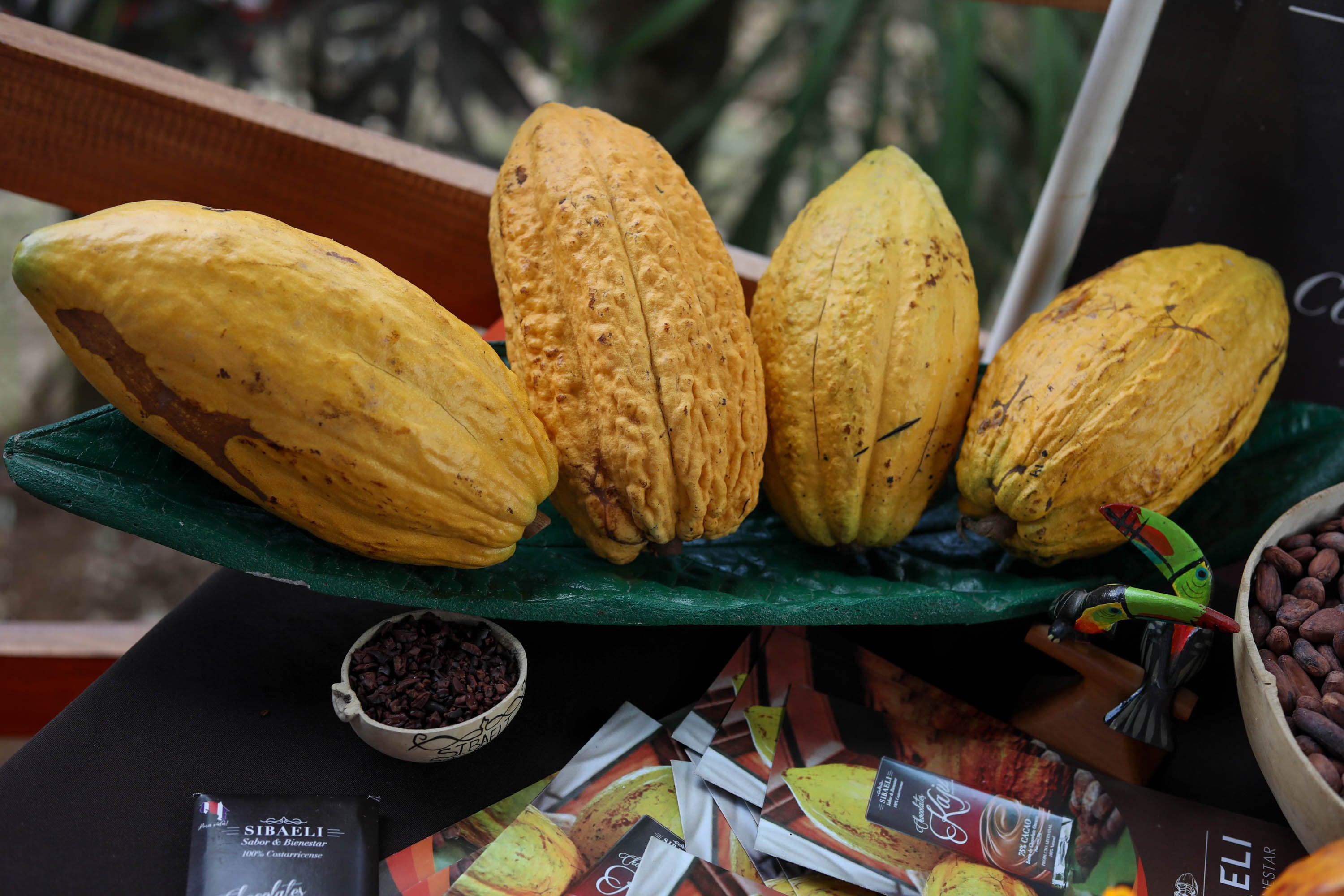 El cacao se obtiene de las semillas que se hallan en las vainas del árbol de cacao; vainas que nacen de una flor parecida a una orquídea que sale del tronco.