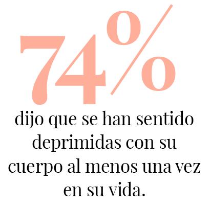 Y seguimos mal: 74% dijo que se han sentido deprimidas con su imagen física al menos una vez en su vida. Si hilamos fino, debemos considerar que la depresión es una enfermedad mental que provoca irritación, cambios en el apetito, odio a uno mismo y en el peor de los casos hasta ideas suicidas. ¡Ven lo grave del tema!