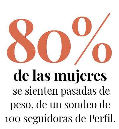La gran mayoría (80%) se sienten gordas y solo 8 de las 100 mujeres se sienten satisfechas con su contextura física; las 12 restantes se consideran muy flacas.