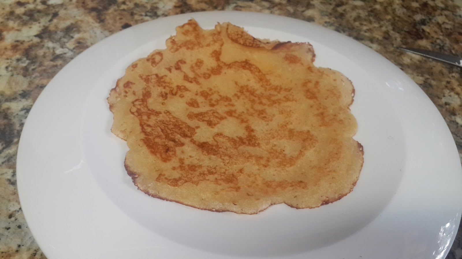 2. Ponga todos los ingredientes en un cuenco y mezcle bien con un tenedor o con varillas por un par de minutos, cuidando que no queden grumos. Utilice una tacita de 1/4 o un 1/3 de taza de medida para echar la mezcla al sartén o una cuchara grande.