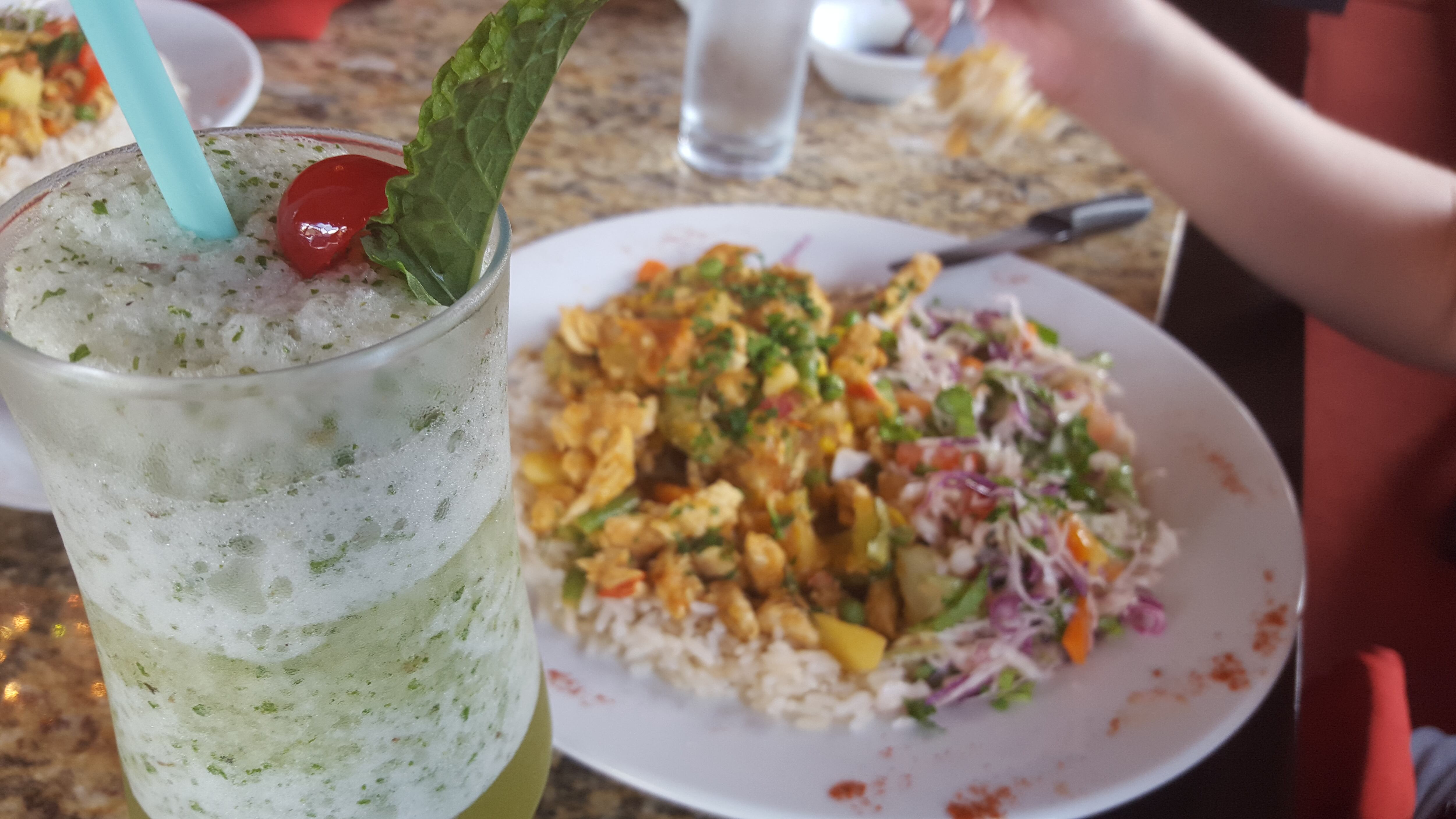 El plato fuerte siempre tiene como base una generosa porción de arroz y una ensalada de la casa. La de este día era con repollo y limón. La proteína era un guiso de pollo con verduras, no muy mojado, bien cocinado, sazonado y con el sabor de la cocina de ese país. Para quedar muy lleno, incluso si se es comelón.