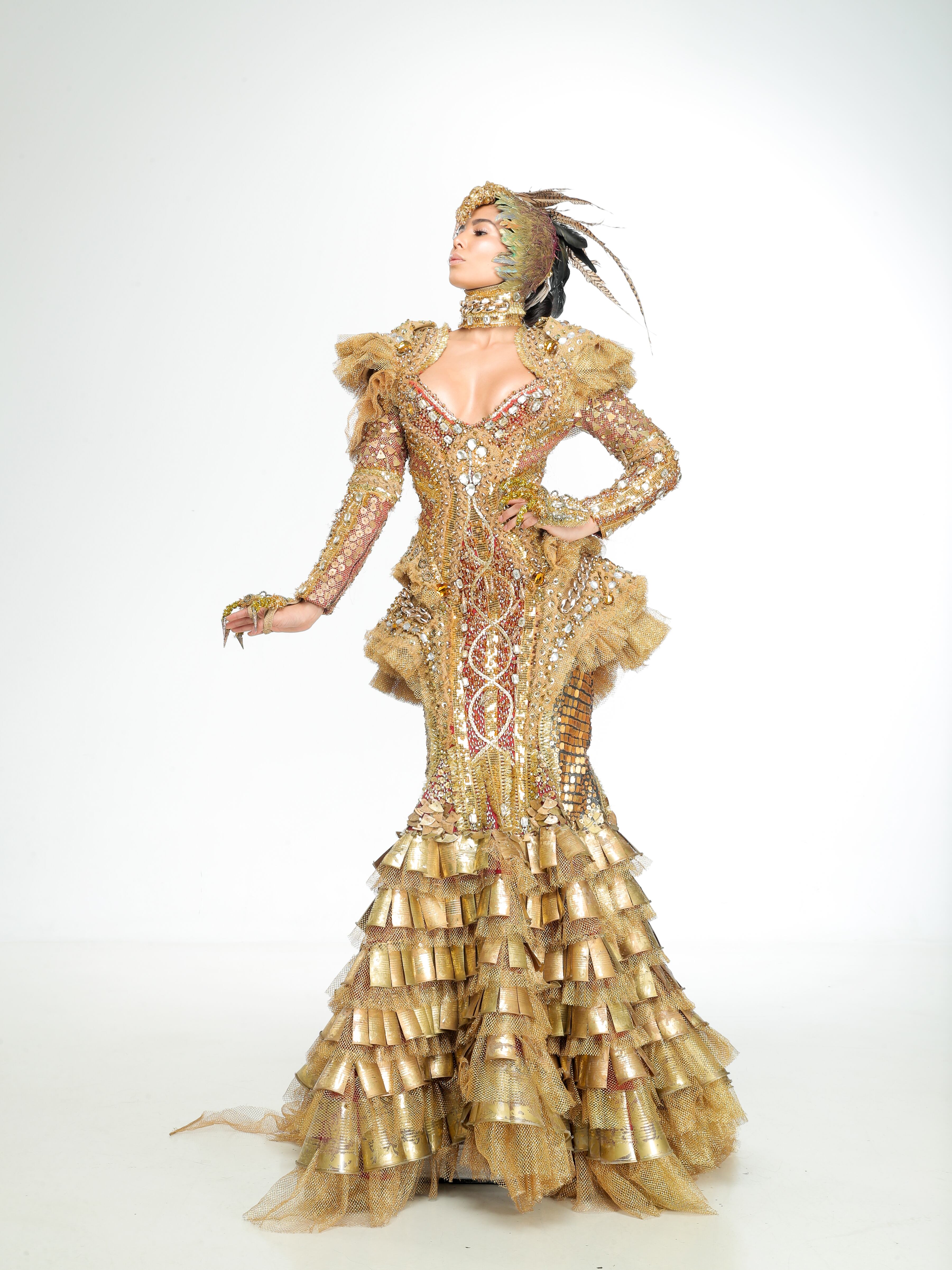 Una de sus creaciones más populares fue la que utilizó Karina Ramos en el concurso de Miss Universo en el 2015. El famoso vestido se valoró en $12.500.
