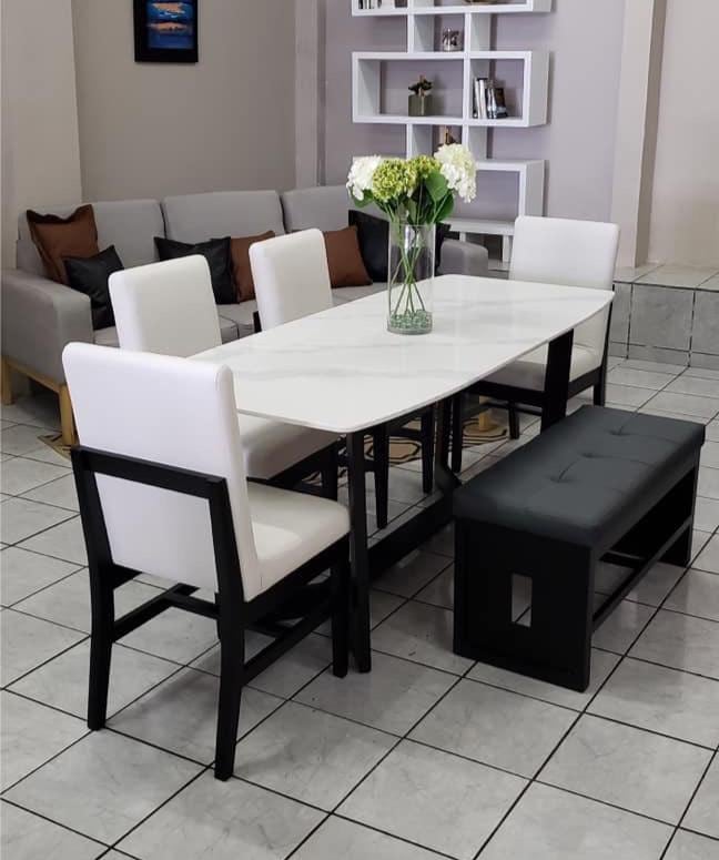 Cuando pone la banqueta del lado de la sala en estos casos, la misma puede ser utilizada tanto para comer como para sentarse si todos los espacios de la sala están ocupados.En otros casos se utiliza viendo hacia la entrada simplemente para lucir el comedor. El hecho de ser bajas proporciona un ángulo perfecto para apreciar el diseño de comedores atractivos.