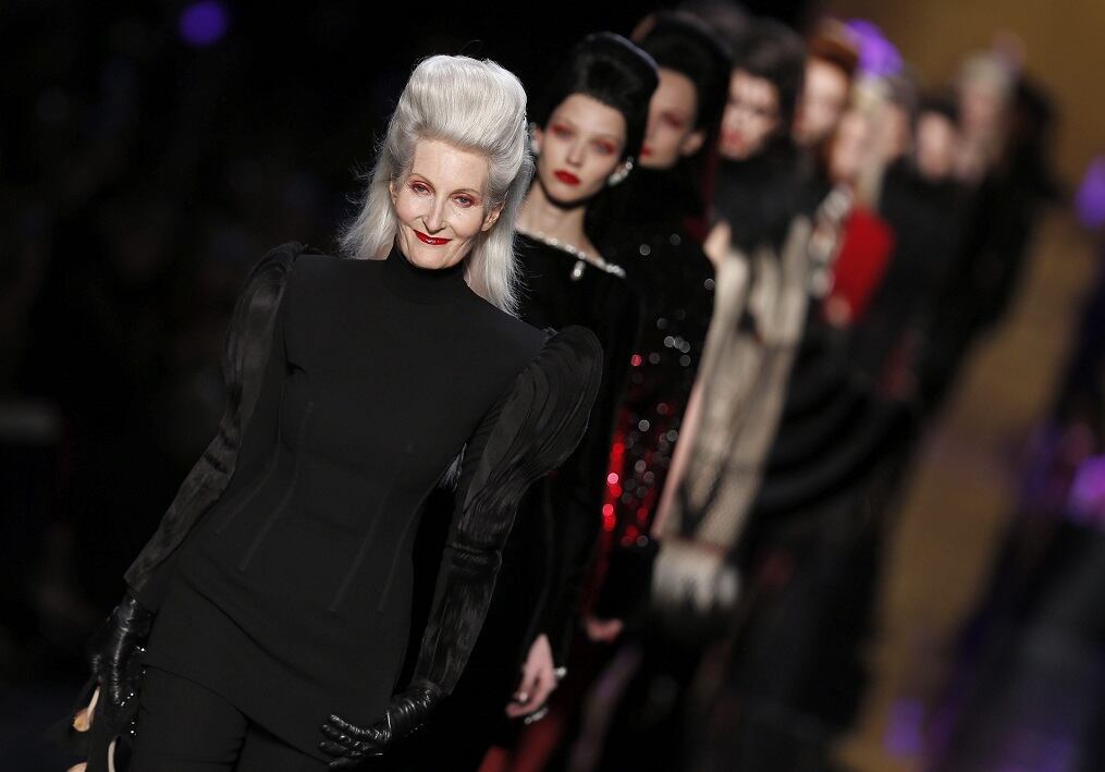 Con mucho negro y rojo sangre, Gaultier hizo desfilar modelos y al cantante austríaco travestido en mujer con barba conocido como Conchita Wurst.
