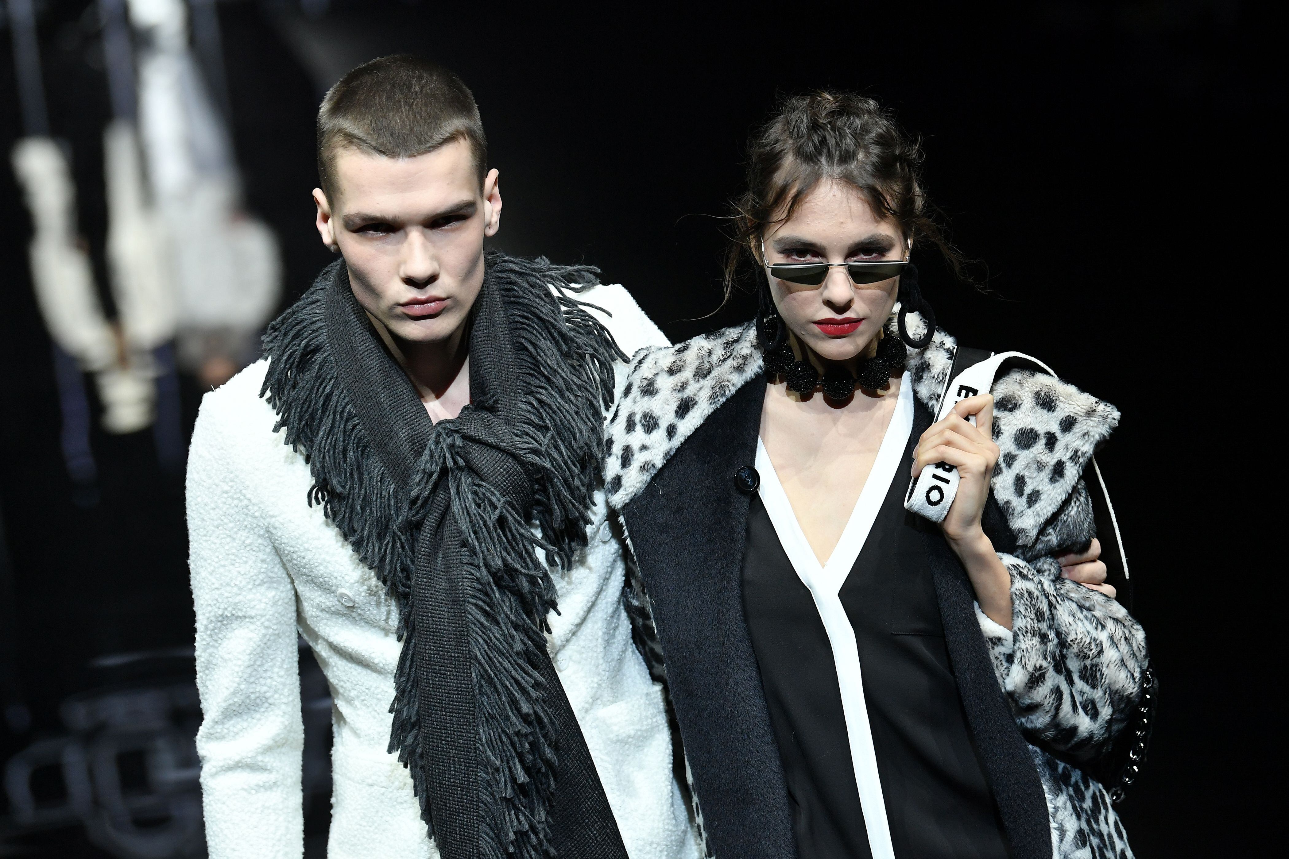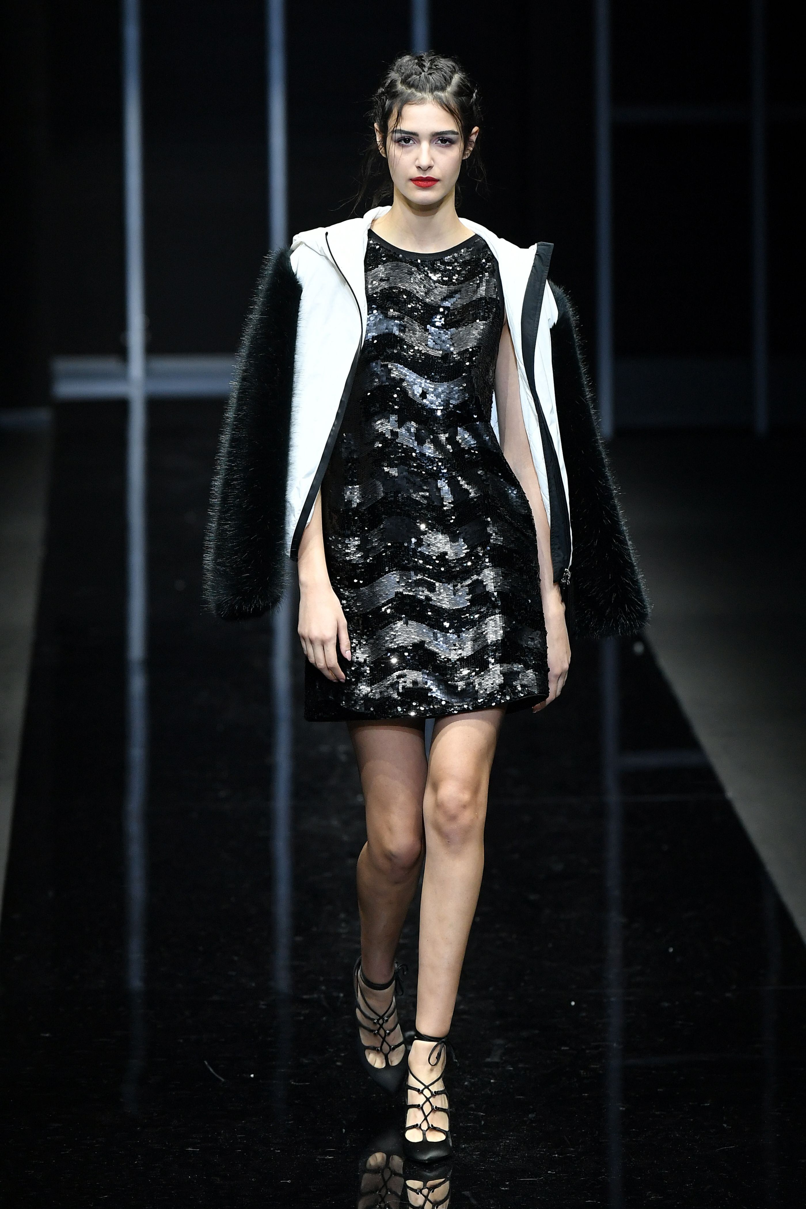 Emporio Armani pone pieles en los hombros, pero también en los bolsos. Los abrigos son de pelo largo, como los zapatos.