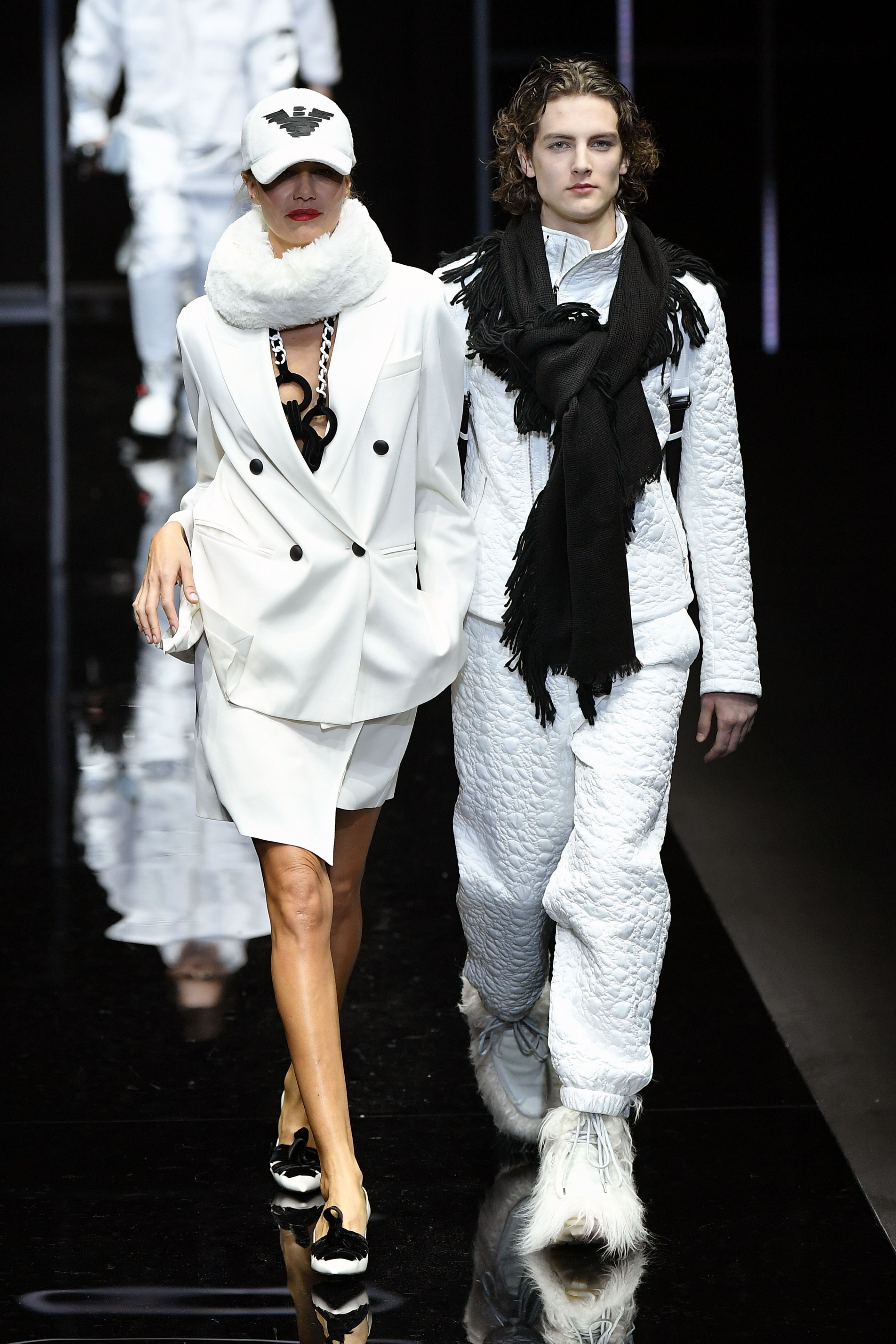 Emporio Armani muestra su apoyo por los estampados animales y propone un efecto pitón en pantalones y chaquetas, y cebra en las americanas.
