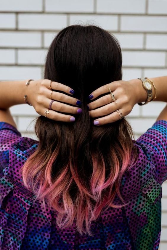 Dip Dye: si le gustaría darle color a su cabello pero no quiere teñirlo todo, la técnica “dip dye” es perfecta para usted. Se tiñen solamente las puntas, dando la ilusión de que su cabello fue sumergido en el tinte. Se puede hacer con colores naturales o fantasía, dependiendo de sus gustos.