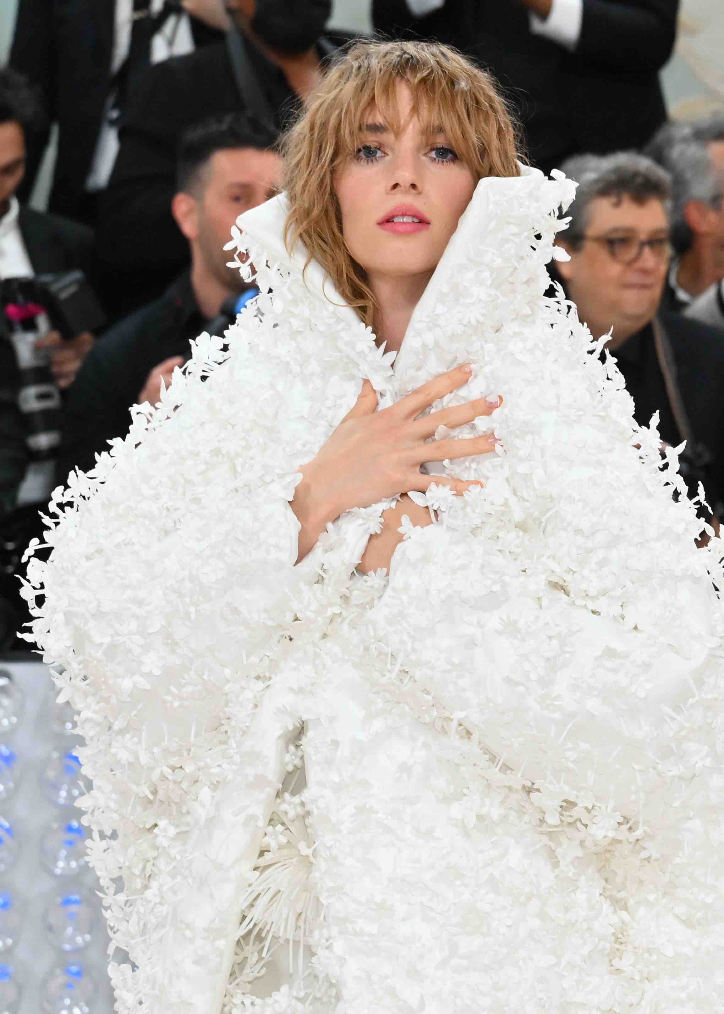 Maya Hawke: La actriz de “Stranger Things” lució un vestido de la casa italiana Prada, que acompañó con un gigantesco abrigo con cola cubierto de flores. Sin duda una detallada obra de arte que recuerda a los vestidos de novia elaborados por Lagerfeld en su momento.