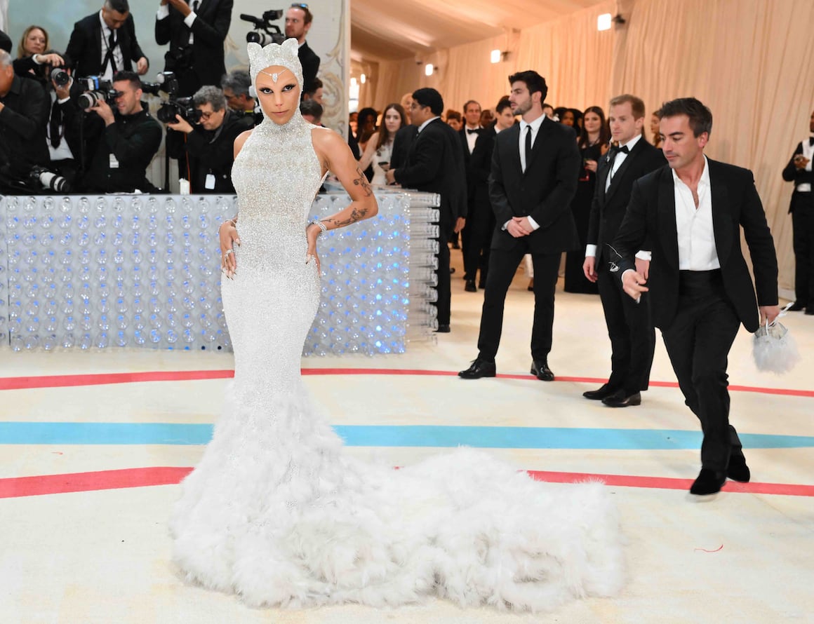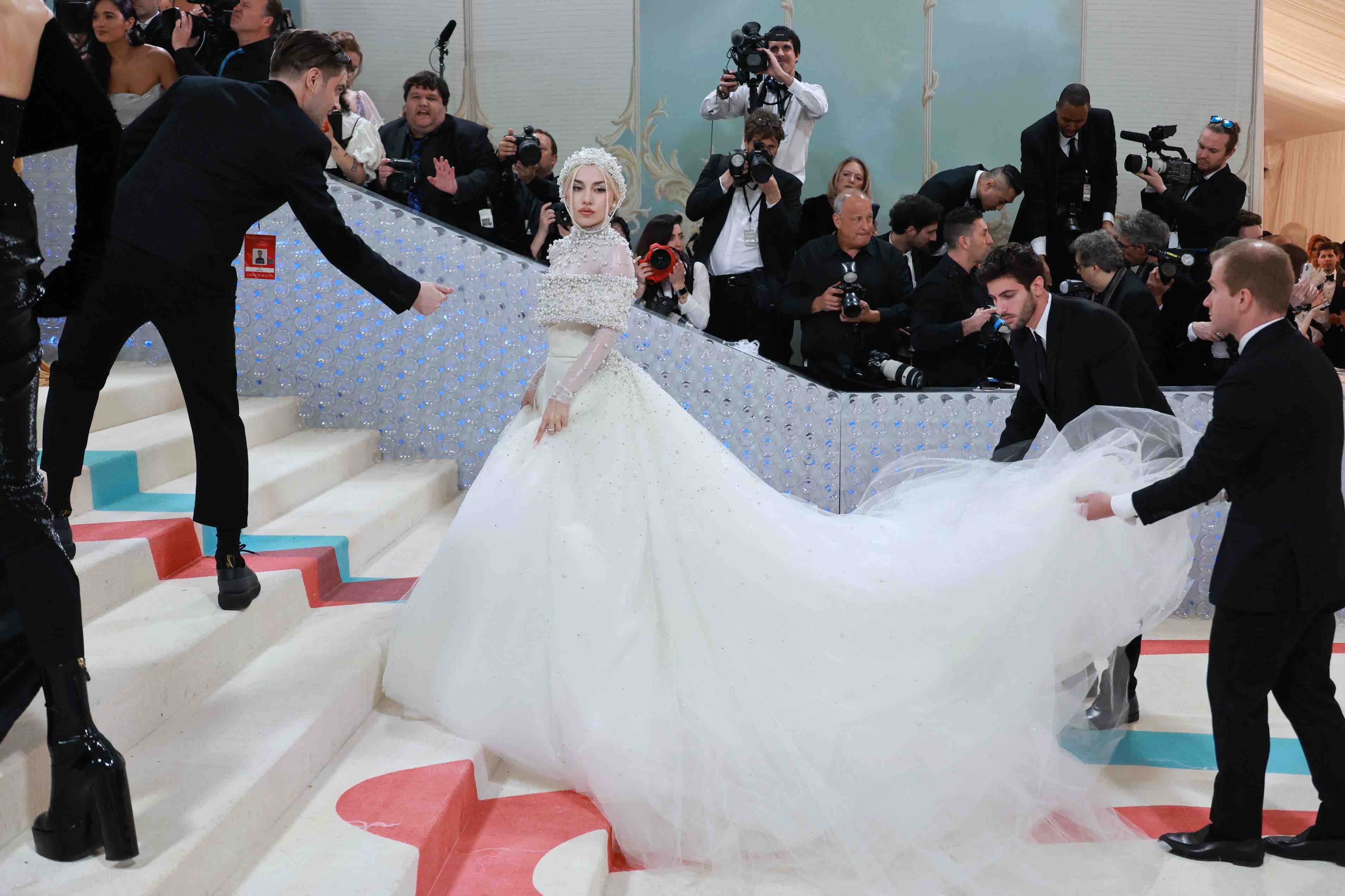 Ava Max: En un Christian Siriano hecho a la medida, Ava Max debutó en la Met Gala con un impresionante vestido blanco cubierto de perlas. Sin duda, otro de los looks inspirados en los recordados vestidos de novia de Karl Lagerfeld.