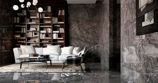 Las vetas y tonalidades de los mármoles más nobles e insólitos reviven. Nuevas inspiraciones acompañan a los mármoles clásicos de la colección que simula mármol junto con inéditas interpretaciones del estilo veneciano.