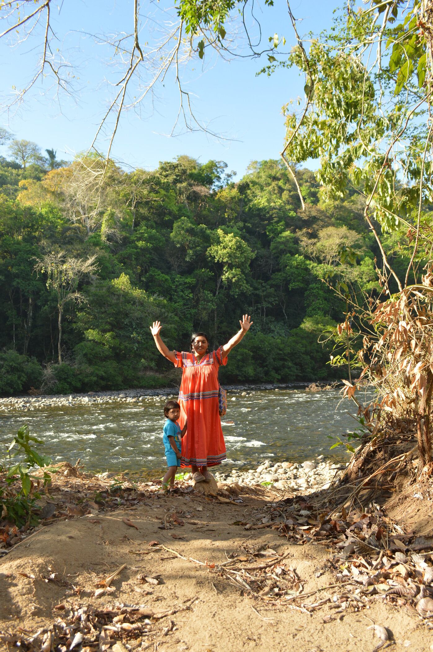 Ayer, Silvia dijo que este río es de Michego, su nieto. De él y de todos los ngäbe. De los ngäbe y de todos los panameños. Caminábamos a la orilla del río, mirando los árboles cortados, la montaña cada vez más ausente, Michego cada vez más inquieto. A menos de un kilómetro del sitio en que se construye la represa, la montaña vuelve a existir y, en medio de ella, un grupo de familias indígenas acampa para vigilar y defender a su río. “Por Tabasará, la vida”, reza una manta que cuelga de los árboles.