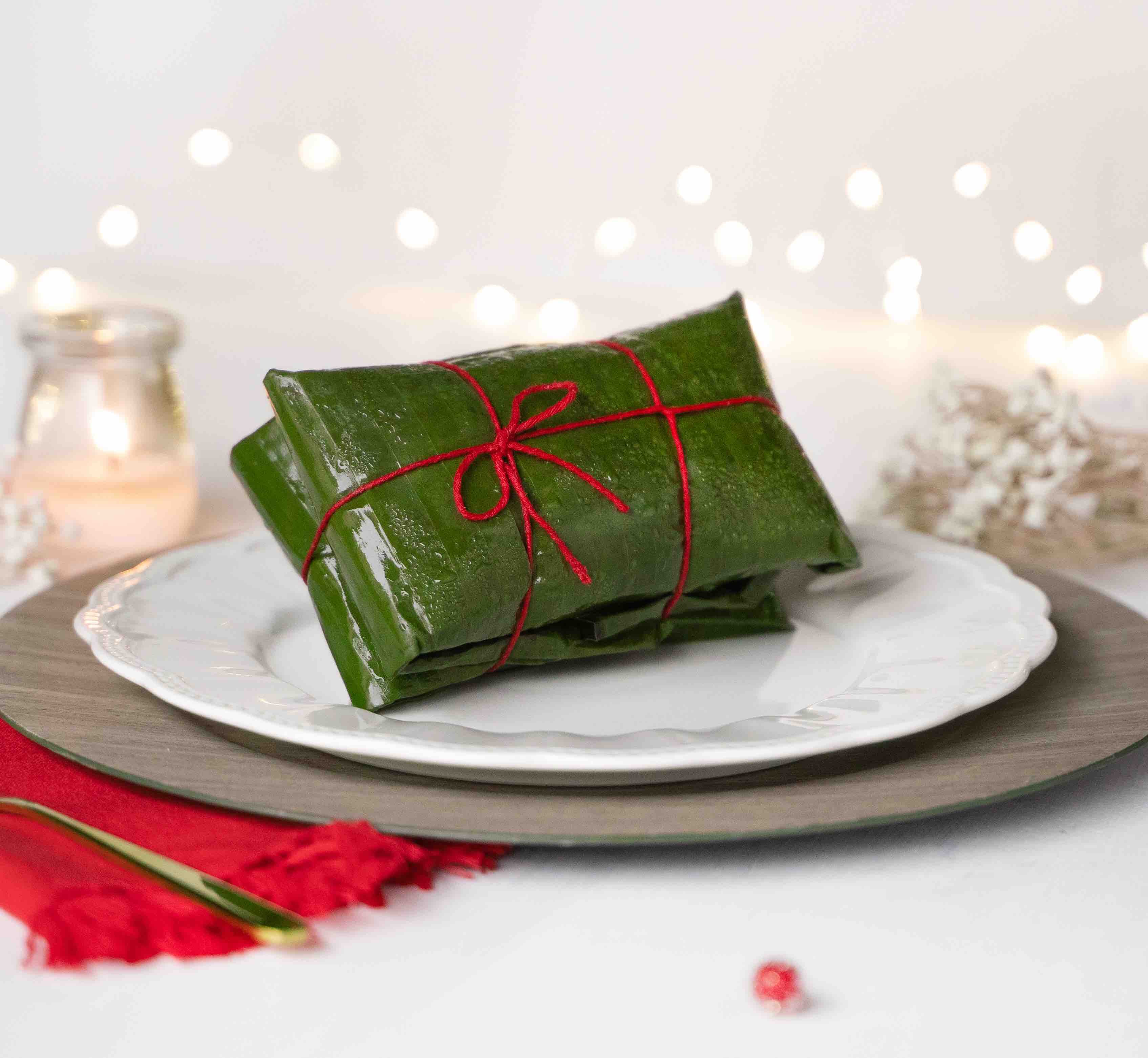 Los tamales de Da Noi son verdaderamente únicos, preparados con dos tipos de carne (pollo y cerdo), garbanzos, arroz y ciruela, superando ligeramente el tamaño tradicional para una experiencia más abundante.