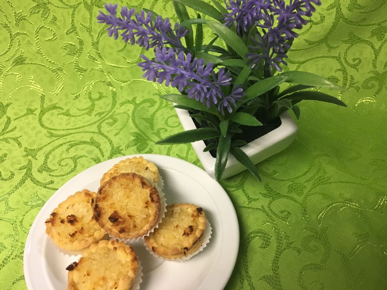 - Extienda la pasta. Corte en círculos y coloque en moldes de quequitos pequeños. De último rellene cada una de ella con una cucharada de la miel de coco.