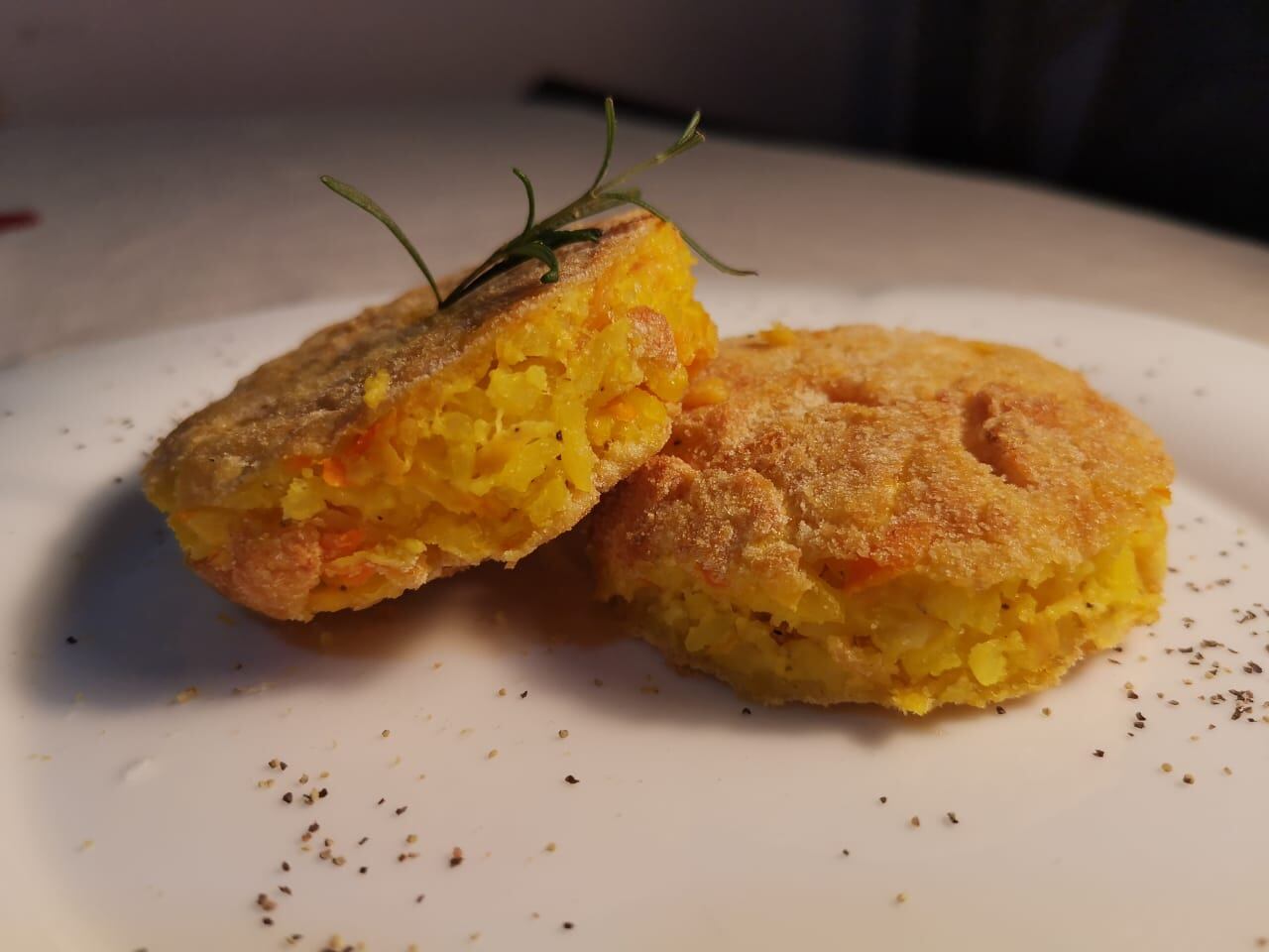 Sacamos y hacemos tortitas, las pasamos por harina, huevo batido y de ultimo por pan molido. Las ponemos en la freidora de aire, a una temperatura de 180 grados por 15 minutos.