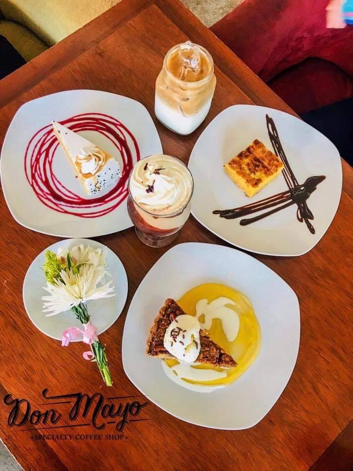 Café Don Mayo cuenta con un cálido espacio abierto al aire libre. En horas de la tarde se ve iluminado por pequeñas bombillas que le dan un giro romántico y acogedor al lugar. Esta cafetería surge como un proyecto de una familia productora de café de la zona de Tarrazú; el café que ofrecen es 100% costarricense y producido y tostado por ellos. Se pueden degustar ricos almuerzos estilo bufet, desayunos, postres y repostería para acompañar cualquier bebida. El café de la marca Don Mayo también se encuentra a la venta en este lugar, en caso de que quiera llevárselo a casa.