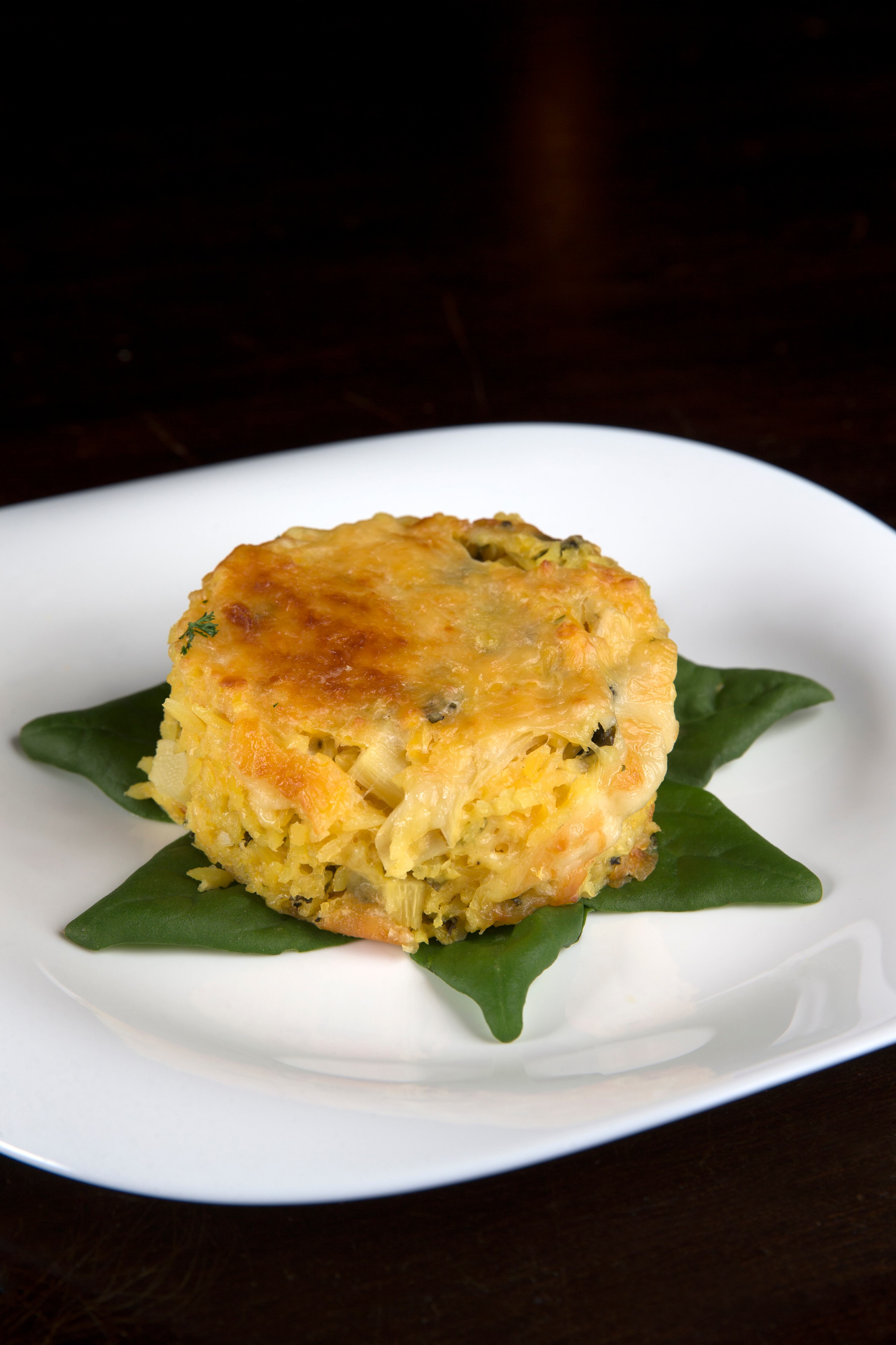 Finalice el montaje cubriendo con el queso restante. Con el horno precalentado a 350°C horneamos el arroz por 35 minutos o hasta que el queso gratine y tome bonito color.