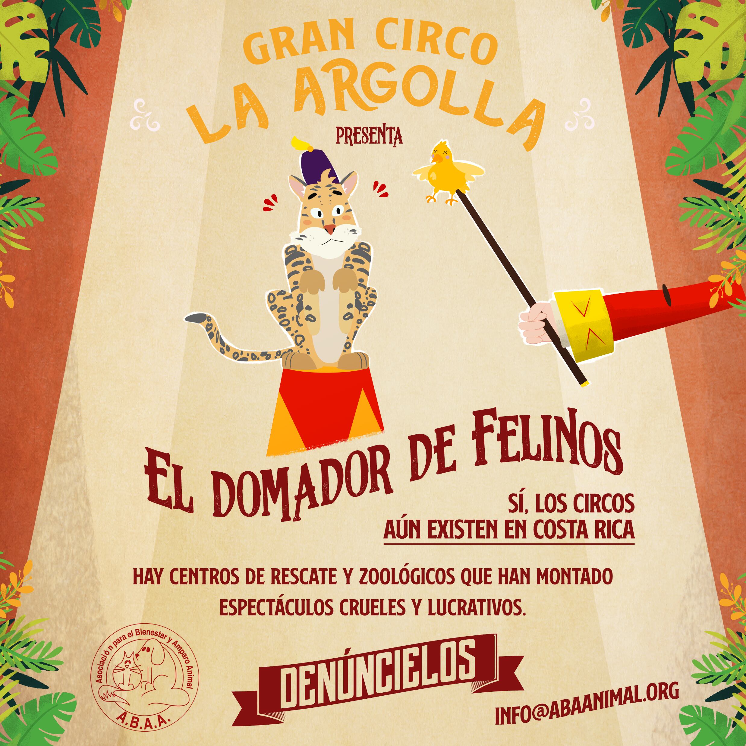Estas y otras acciones, que se ven de manera normal o cotidiana es lo que busca denunciar una campaña a nivel nacional denominada “Circo La Argolla” donde se exponen diversos momentos grabados de manera real en nuestro país, en los cuales se expone el maltrato y crueldad que realizan cuidadores de centros de rescate y zoológicos con animales silvestres con el único fin de atraer la atención de turistas y obtener un beneficio lucrativo.