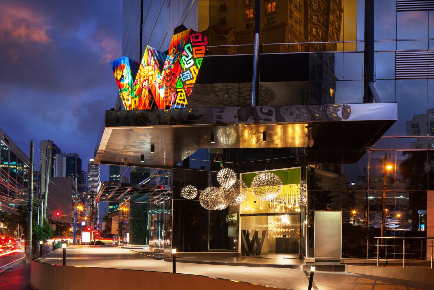 W Panama: La música, la moda y el diseño convergen en el W Panama. Ubicado en el centro de la ciudad en un original rascacielos que llegó para interrumpir el skyline de la ciudad, este hotel con diseño contemporáneo inspirado en la cultura local y la historia de Panamá ofrece cómodas y modernas habitaciones así como una experiencia culinaria cosmopolita llena de productos locales y una exclusiva coctelería.