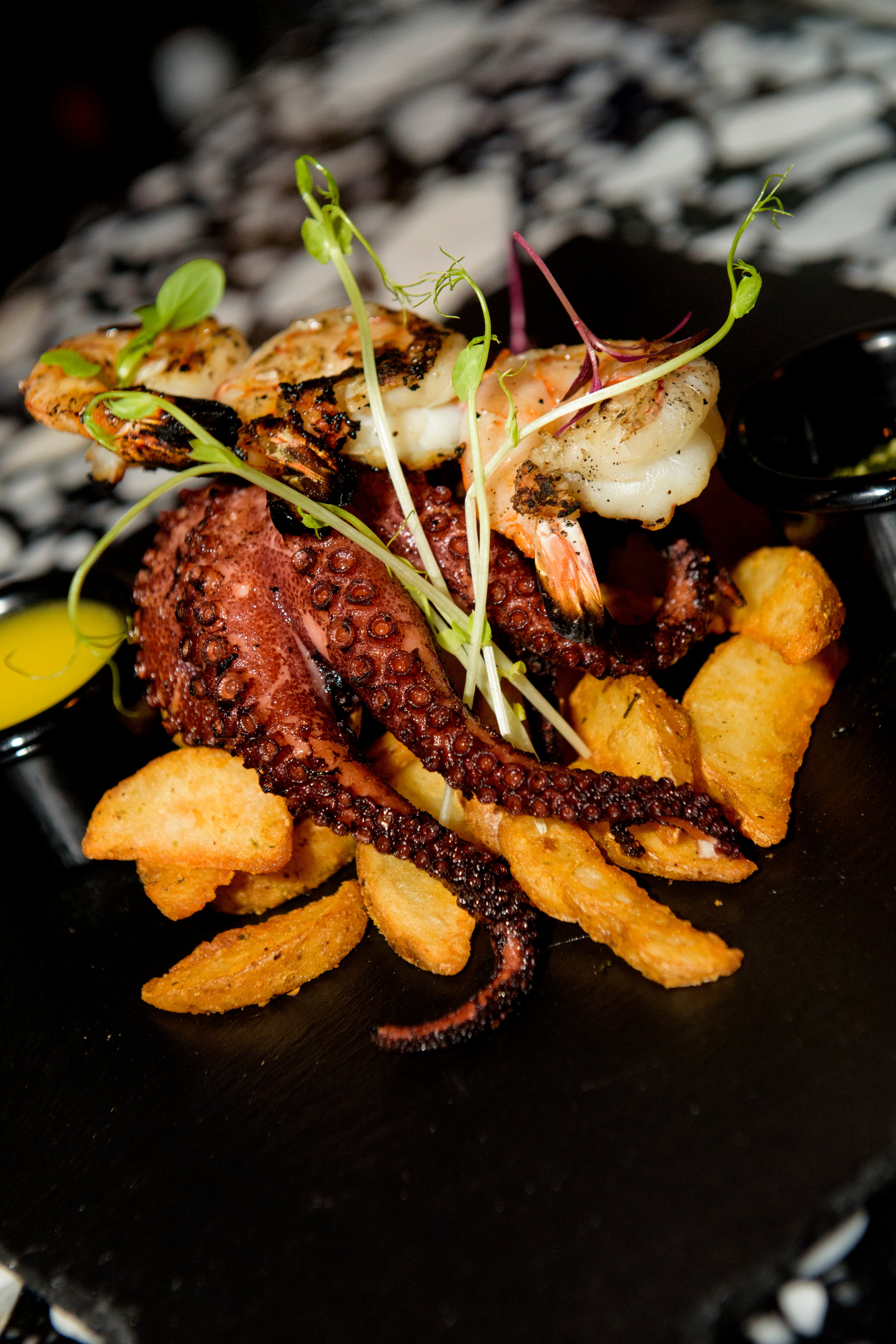 Seguido llegó el tiradito de atún “aticado” con la incorporación de croquetas de guantán, un pulpo a la parrilla sensacional, Cubero explicó que para llegar al punto fusionan técnicas de cocción francesas, españolas y ticas.