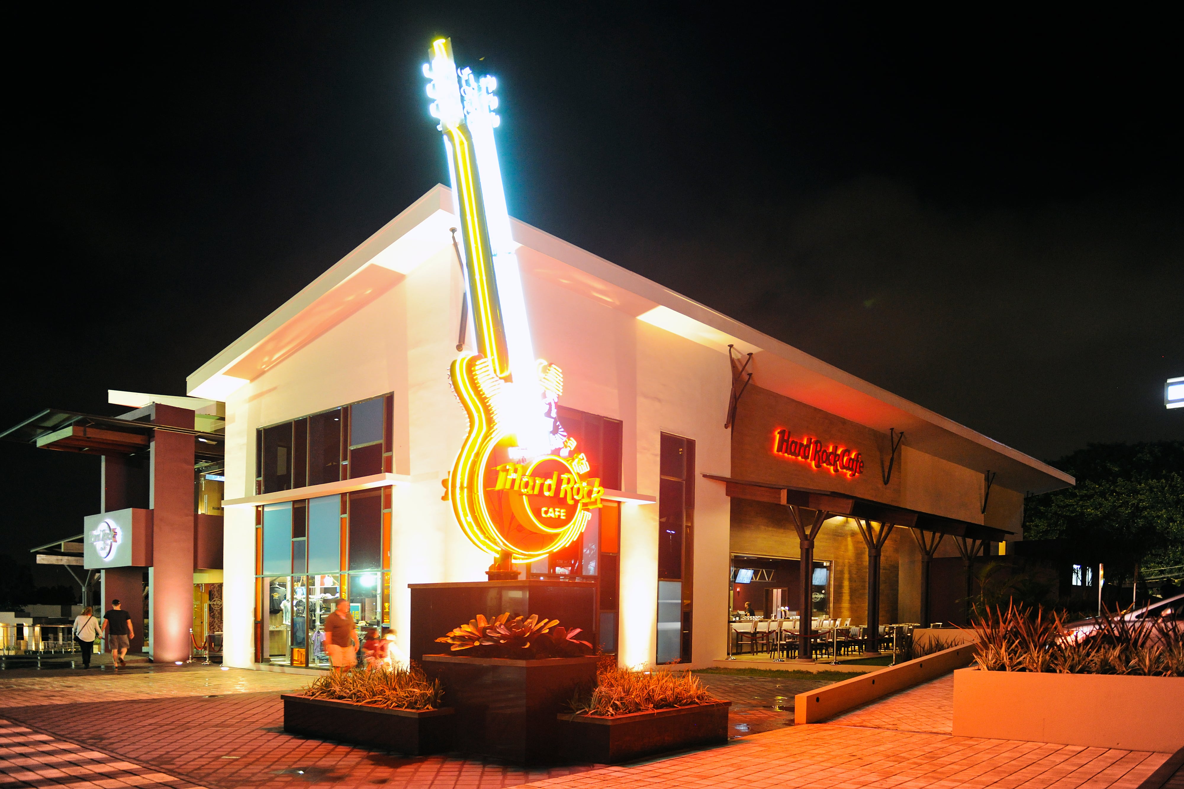 Es imposible pasar por la autopista General Cañas y no ver la gran guitarra que anuncia la presencia de un Hard Rock Café en Costa Rica, restaurante que se destaca por sus amplios y abiertos espacios, por tener un escenario 360° y por su estilo anfiteatro.