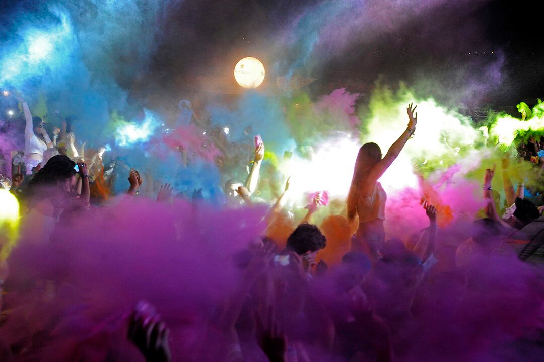 Los colores emanarán de pequeñas bolsas y se convertirán en inmensas nubes de color en una jornada de doce horas donde la música con notas tropicales será protagonista.