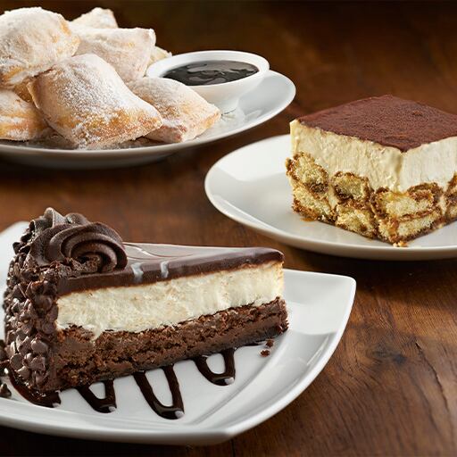 Como debe ser, le recomendamos que termine su comida con un café de la casa y uno de los deliciosos postres italianos: zeppoli (donas italianas calientes), cheesecake siciliano, lasagna de chocolate brownie o tiramisú. Lo difícil será elegir.