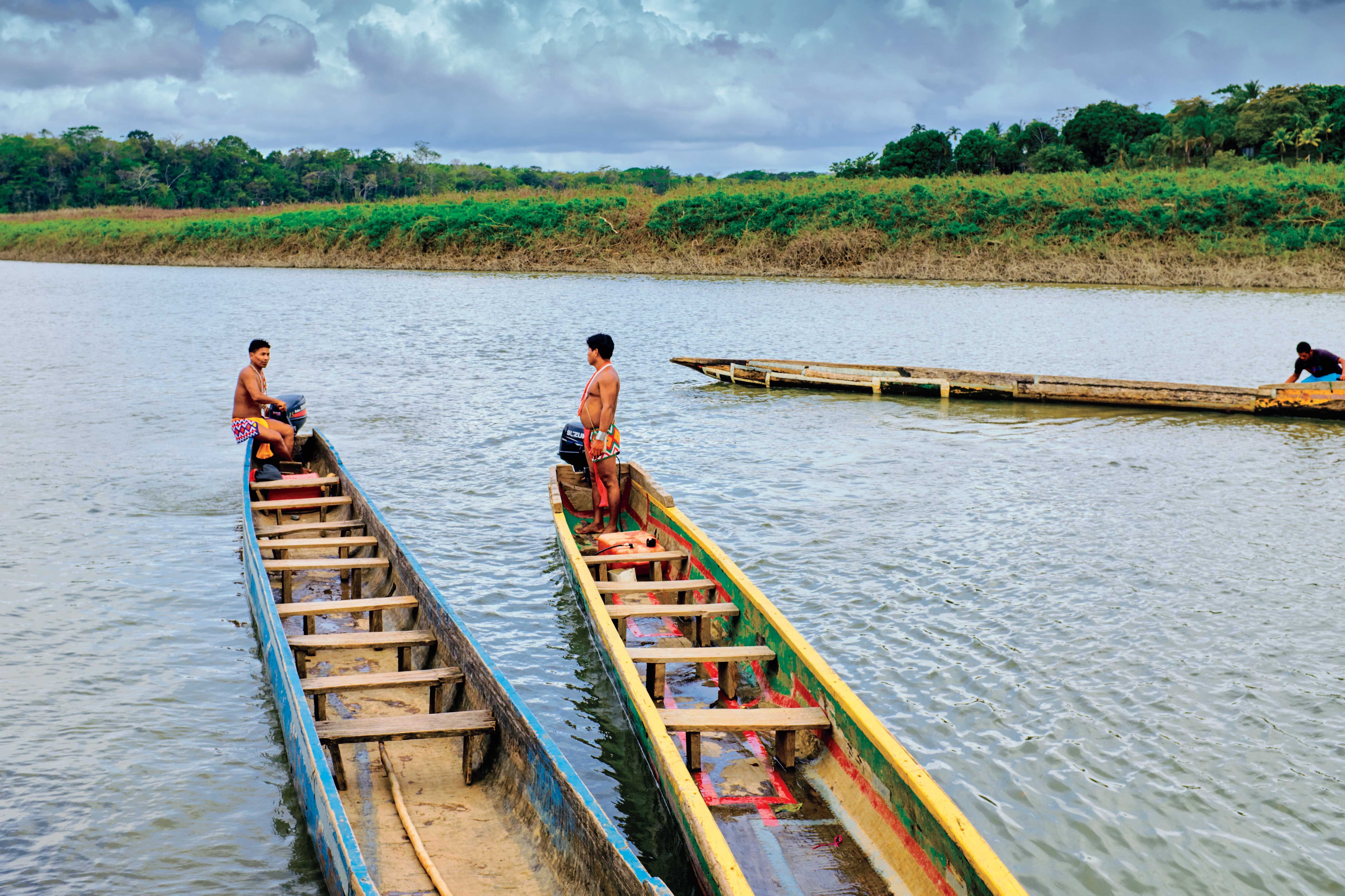 El recorrido para llegar a la aldea de los indígenas Embera Quera inicia en el río Gatún, Colón, Panamá. En la orilla, a los visitantes los esperan dos miembros de la comunidad, que visten llamativos taparrabos y excéntricas joyas. Ellos son los encargados de llevar a los turistas en botes –hechos por los habitantes de la comunidad con un solo tronco de madera– hasta el pueblo y mostrarles las diferentes especies en el camino.