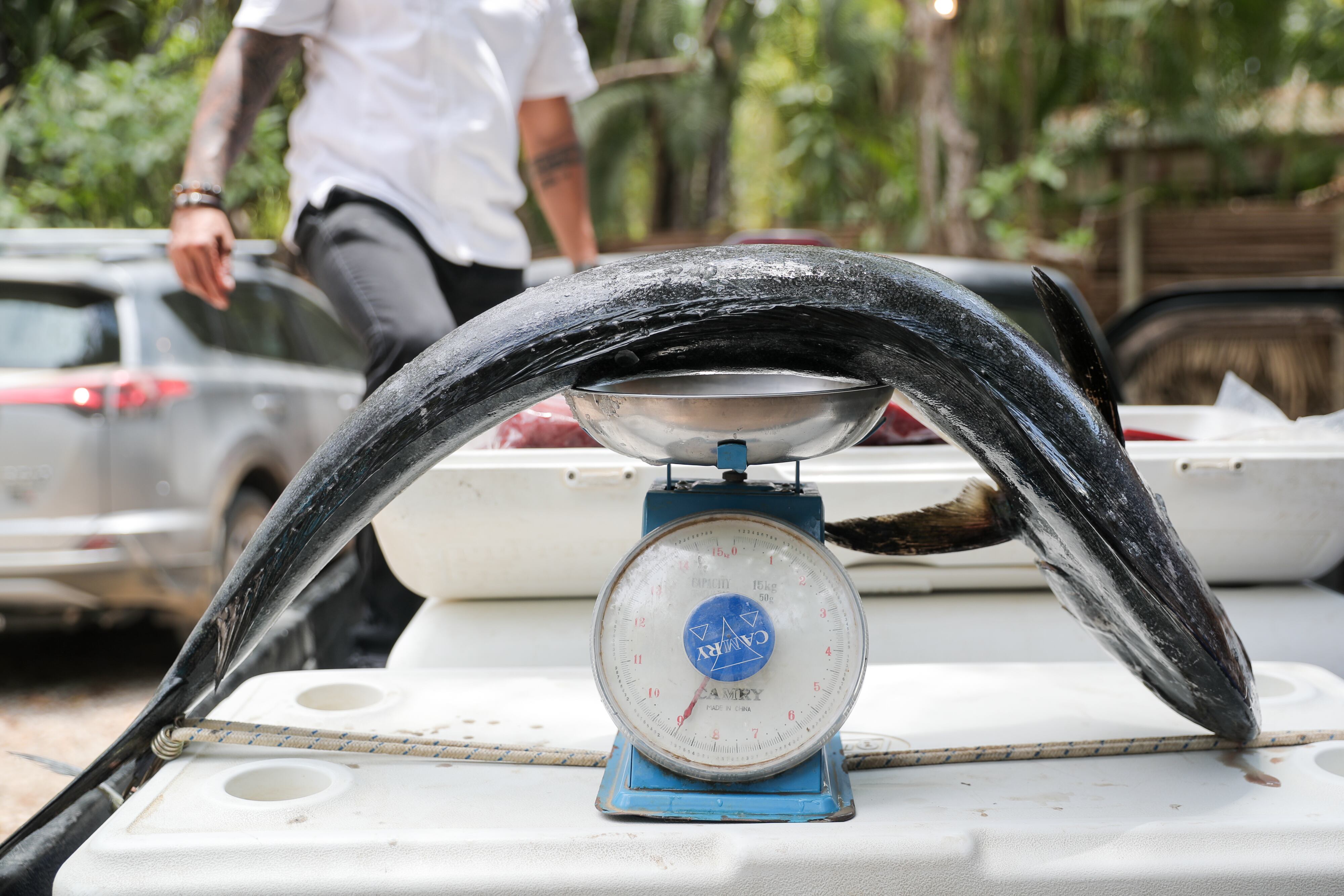 “Soy sumamente crítico con los restaurantes que por ejemplo utilizan salmón. Yo entiendo que es sabroso pero no es el mismo sabor luego de estar meses congelado. No es lo mismo que usted active su economía local, es mejor aprovechar el pargo, la corvina, lo que esté de temporada”, comentaba Randy mientras seleccionaba tres dorados de cerca de 14 kilos cada uno.