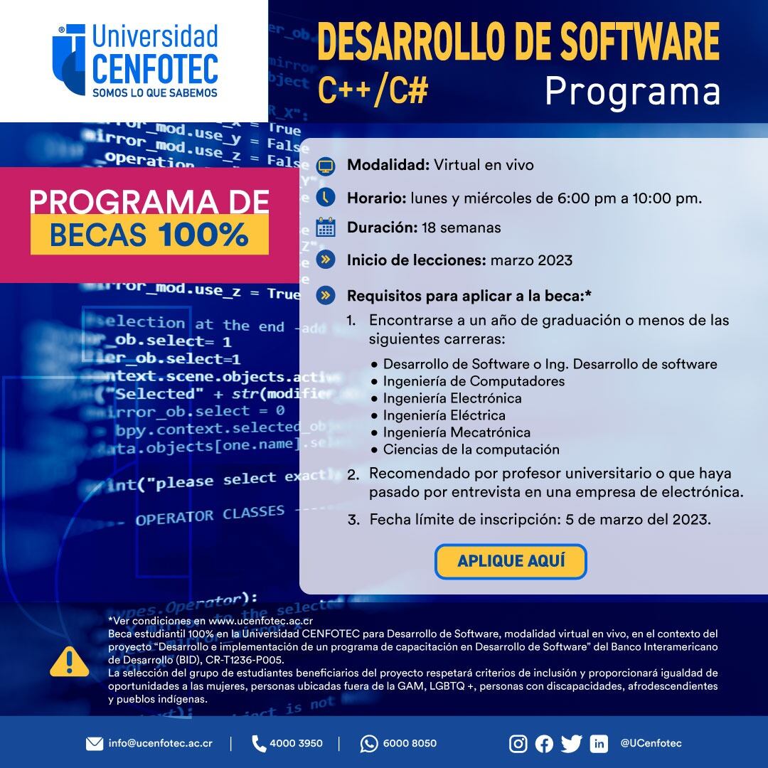 Inscripciones para el programa “Desarrollo de Software”: https://ucenfotec.ac.cr/programa-de-becas-desarrollo-de-software/