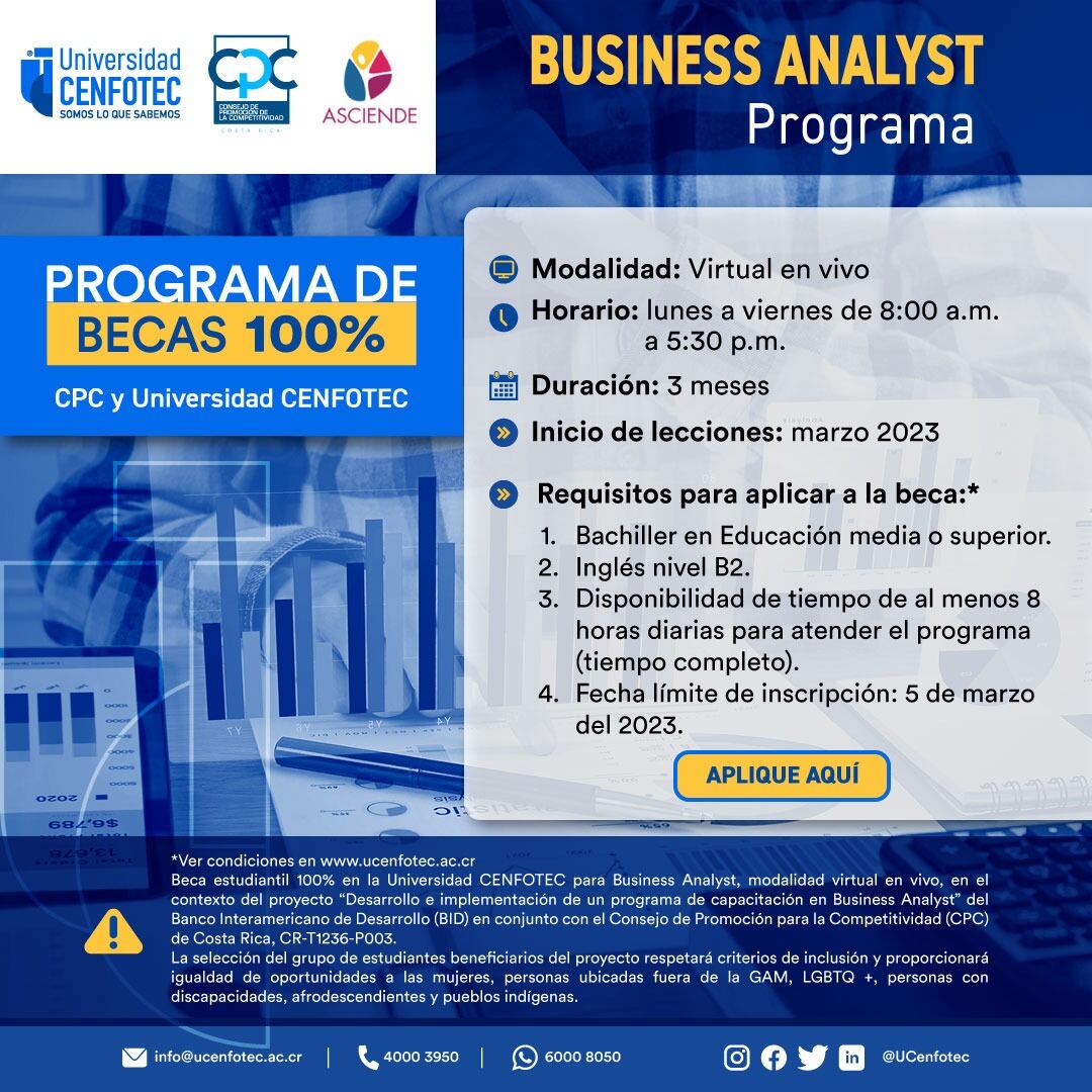 Inscripciones para el programa “Business Analyst”: https://ucenfotec.ac.cr/programa-de-becas-business-analyst/