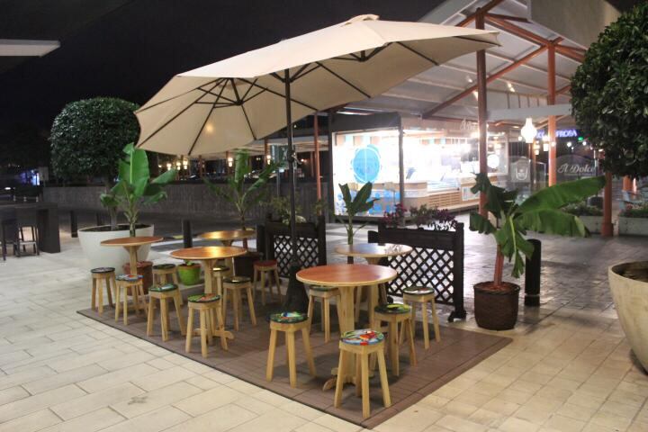 Efectivamente, el trazo del pincel del artista nacional Alfredo Alvarado está reflejado en las mesas y bancos del local e inspirado en la flora y fauna nacional para que los visitantes recuerden la belleza natural que encierra Costa Rica.