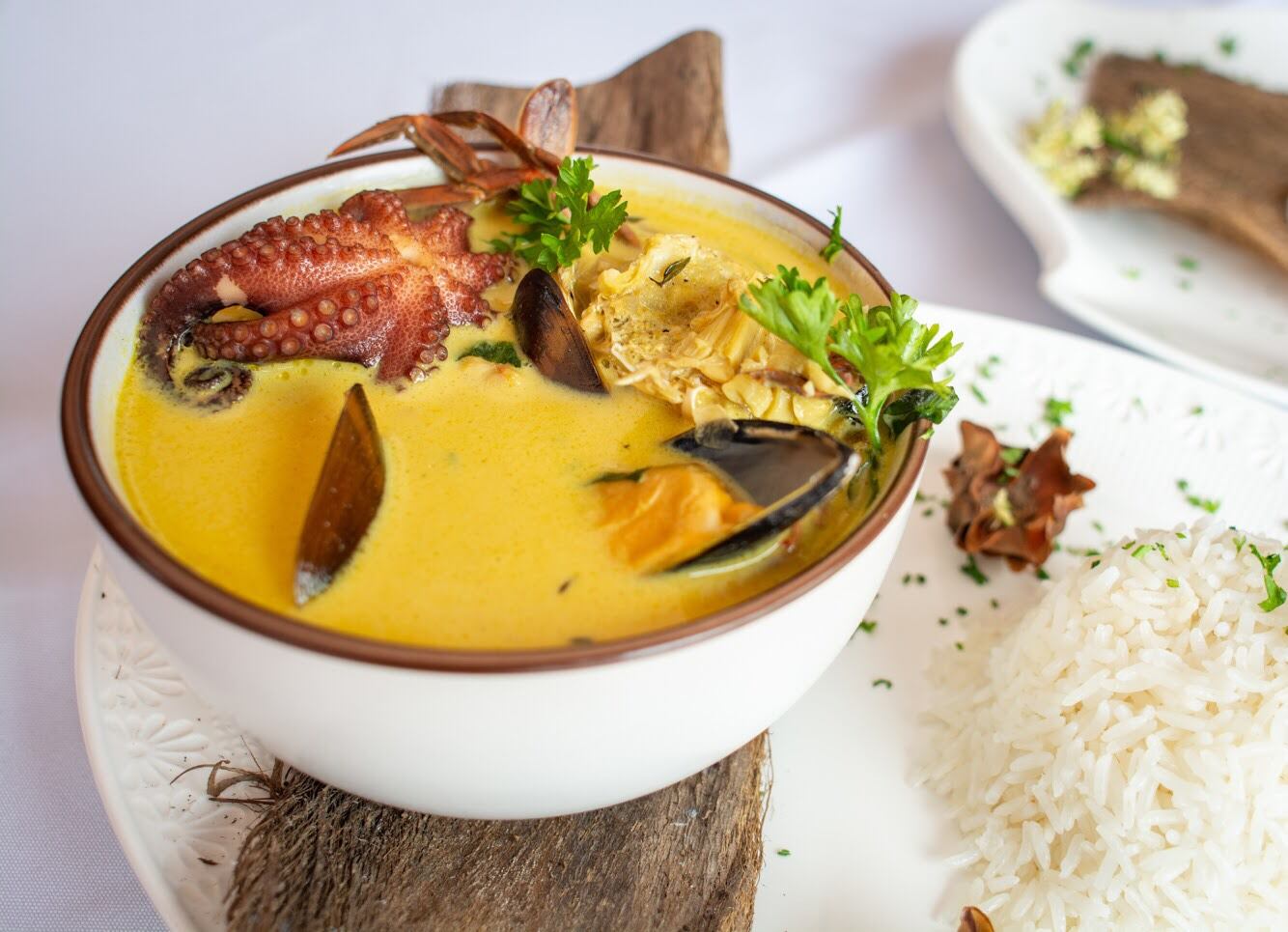 Sopa de mariscos: La sopa de mariscos con leche de coco, receta única en sabor, textura y aroma. Entre las recetas más tradicionales de la comida tica destaca esta sopa.