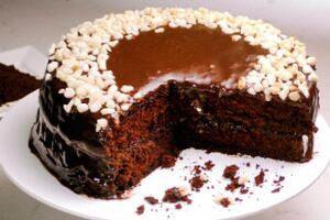 3. Con el lustre aún caliente, rellene el queque y cúbralo con la salsa. Puede decorar con macadamias o nueces picadas si lo desea.