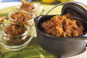 11. Cuando el chiverre tenga un color canela uniforme, es señal de que casi está listo. Agregue la ralladura de naranja agria.