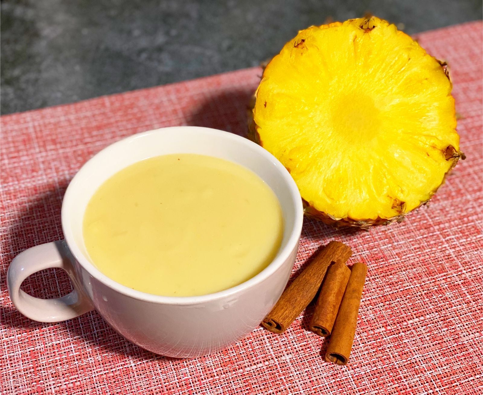 1. Licue la piña con el agua y cocínela a temperatura media, con el azúcar y la canela.
